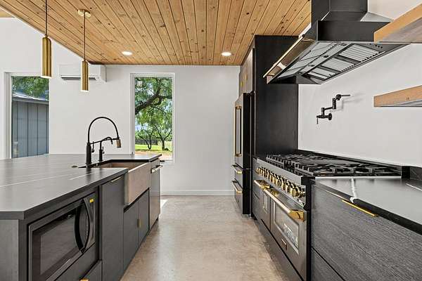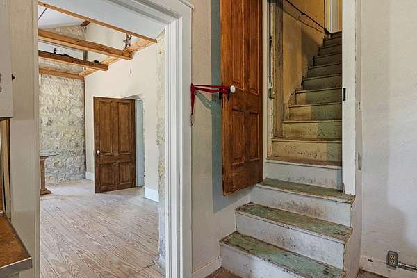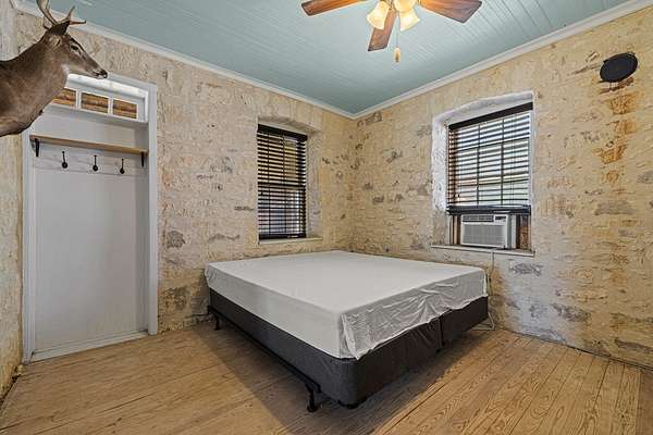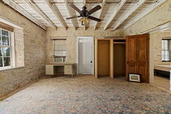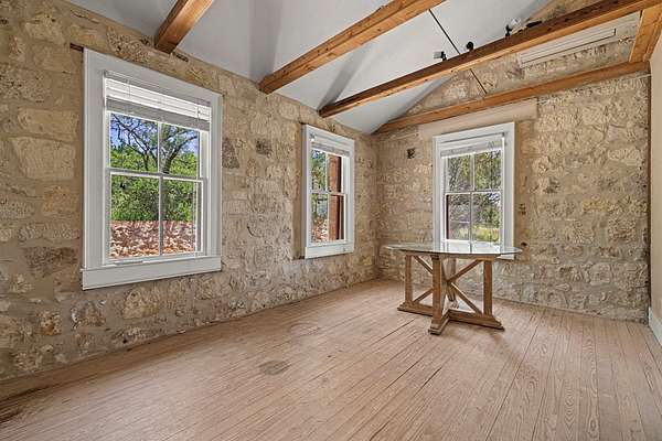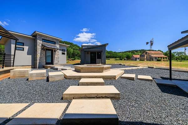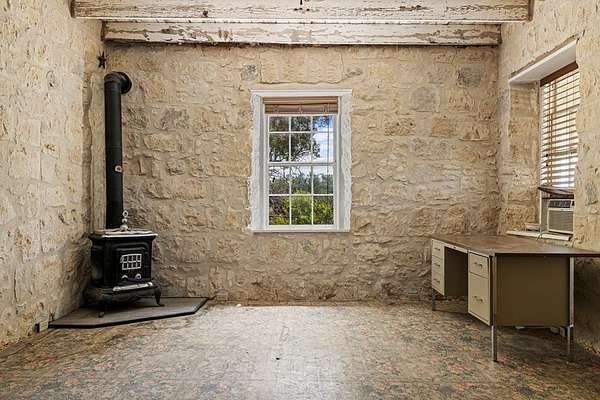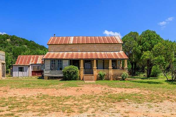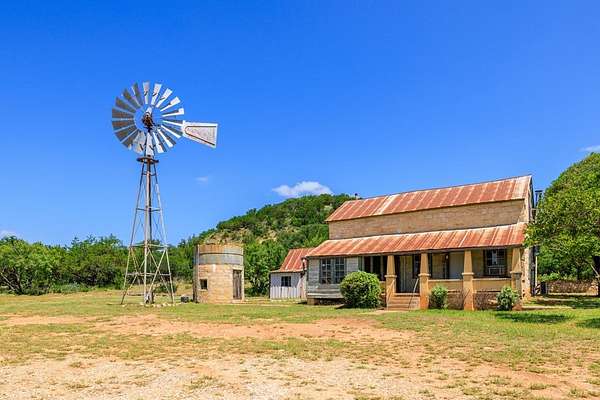 Onion Creek Ranch offers 73.3 ag-exempt acres in Mason County with a rare blend of historic character and versatile improvements. The 1886 German limestone home stands as a 1.5-story centerpiece, set alongside a traditional dry-stack rock fence and windmill. Nearby, a thoughtfully designed modern compound includes five structures: two bunk cottages with built-in bunks, sinks, and mini-fridges; a bathhouse with two full baths and a kitchenette; a third bunk room with a half bath; and a spacious kitchen pavilion featuring vaulted ceilings, dining space, and a loft. A versatile laundry/mechanical room and a barn complete the improvements. The property boasts cohesive finishes throughout, including concrete floors and custom cabinetry. Rolling terrain, spanning approximately 1,820-1,940 ft in elevation, provides scenic outdoor areas, hiking trails, and hunting opportunities. Located 28.5 miles from Fredericksburg and 20.8 miles from Harper, this rare property combines privacy, recreation, and long-term potential.