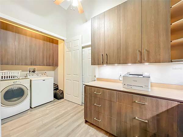 A dedicated utility/craft/office room with custom cabinetry adds flexibility and organization. The primary bedroom and bath provide a comfortable retreat, while the thoughtfully designed layout maximizes space and function.