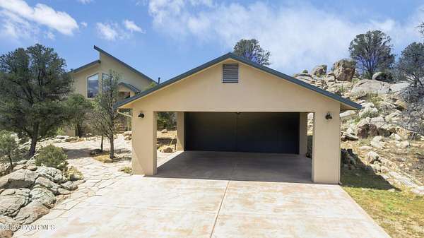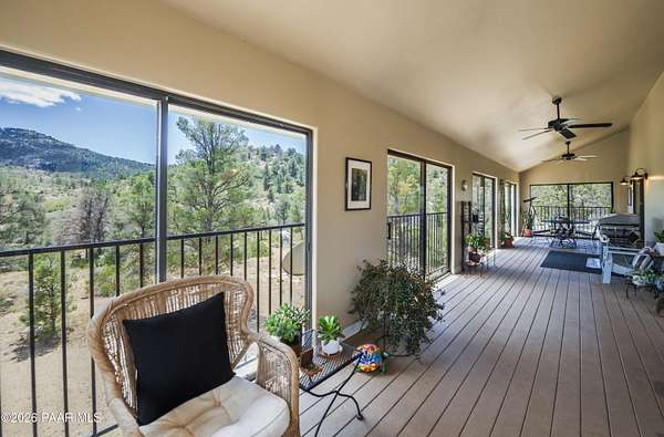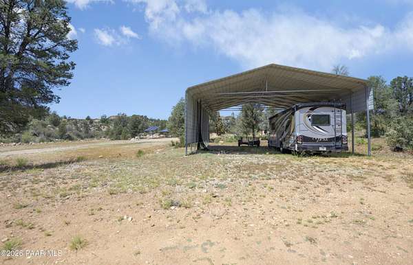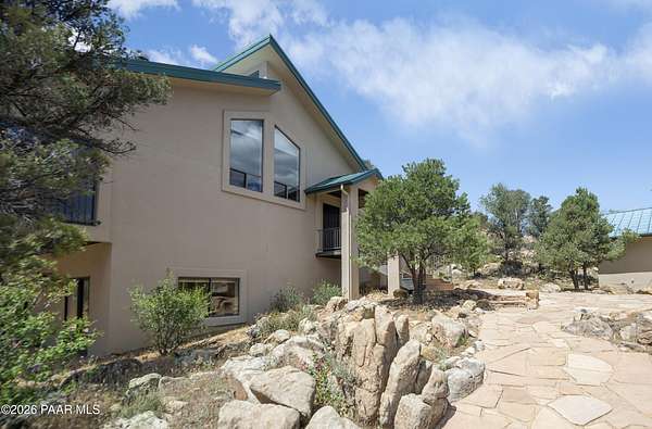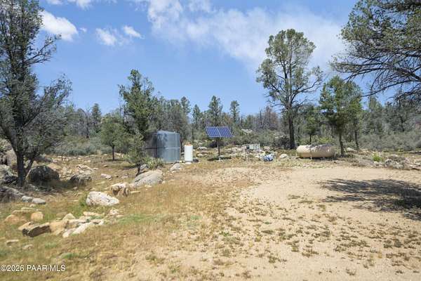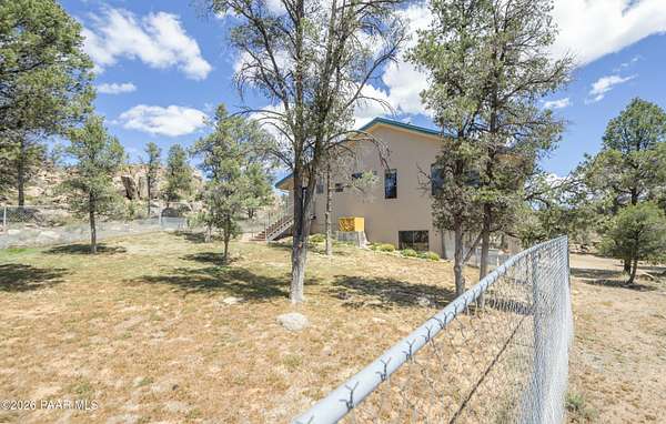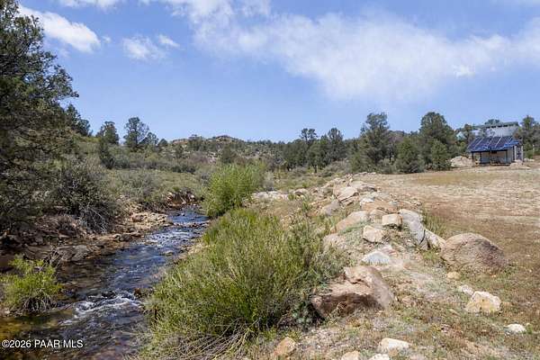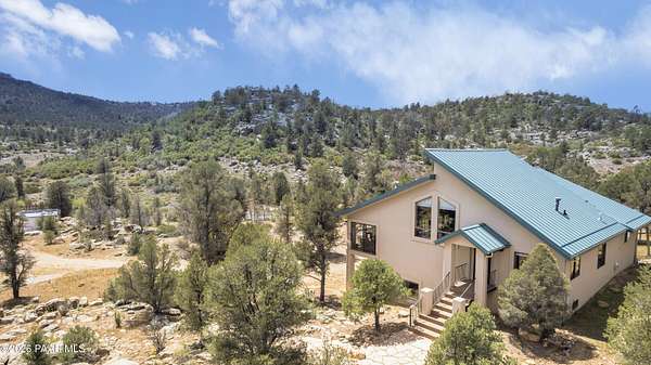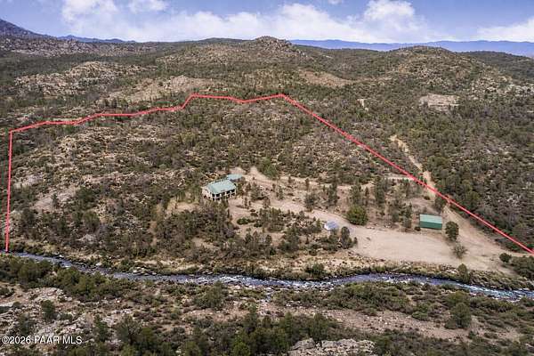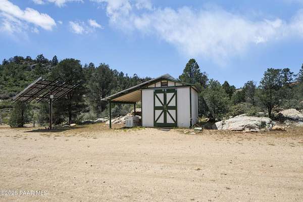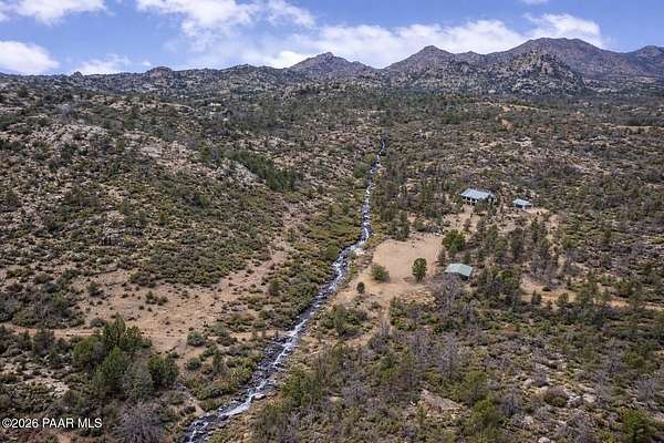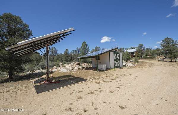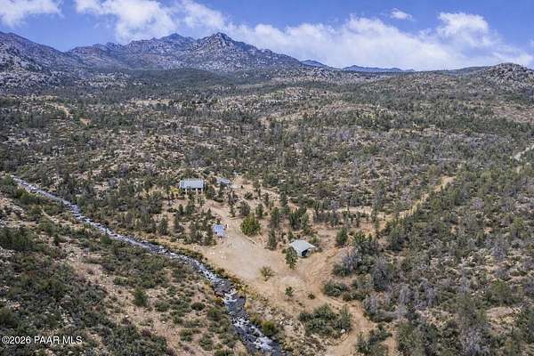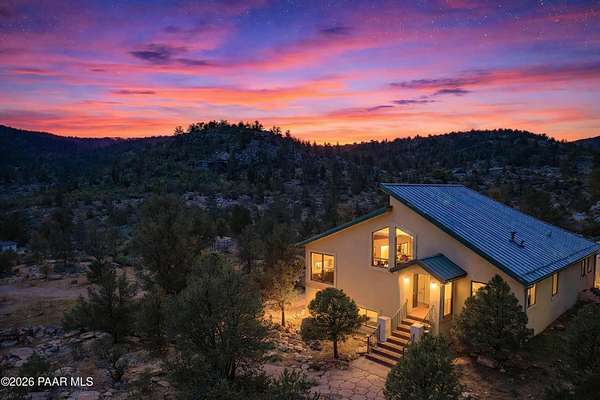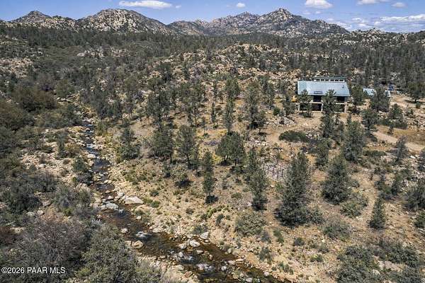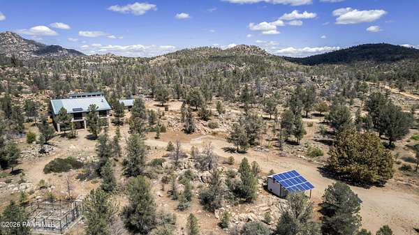 Off-Grid Arizona Homestead on Nearly 30 Acres | Solar Power | Private Well | No HOA | Horse PropertyDiscover a rare opportunity to own a private off-grid homestead in the Weaver Mountains on nearly 30 acres of scenic Arizona land. Located behind a locked gate just 3.7 miles down a private dirt road, this property offers the privacy, independence, and wide-open space buyers are searching for.Situated at just under 5,000 ft elevation, the property enjoys cooler mountain temperatures, four mild seasons, beautiful views, and a seasonal creek, making it an ideal escape from the desert heat. Surrounded by junipers and pinion pines, the setting provides both natural beauty and exceptional privacy.The 3,040 sq ft custom two-story home was designed for efficient off-grid living using Structural Insulated Panels (SIPs) for superior insulation and energy efficiency. The home is also positioned to take advantage of passive solar heating and cooling, while two propane stoves provide additional comfort in winter. A durable metal roof adds long-term reliability.Inside, the open floor plan features soaring pine cathedral ceilings, a spacious kitchen with granite countertops, built-in appliances, and a large island with sink and storage, and plenty of natural light throughout.Additional living and workspace highlights include:- 480 sq ft glassed and screened Arizona Room with mountain views- Main-level primary bedroom, office, kitchen, and laundry- 3/4'' solid red oak flooring on the upper level- New plank vinyl flooring on the lower level- 608 sq ft workshop with overhead door that can also function as a tandem 2-car garageThe property is well-equipped for off-grid living, homesteading, and outdoor recreation, featuring:- Private well with 5,000 gallon water storage tank- Solar-powered well pump- Dedicated solar equipment and battery building- Oversized detached carport- Two-bay covered RV parking- Fully fenced backyard with motion lighting- Irrigated and enclosed garden area- Custom in-ground cook pit for outdoor gatherings- Firewise mitigation completed Spring 2023With minimal community restrictions and NO HOA, the property provides flexibility for horses, livestock, gardening, recreation vehicles, or additional structures.This one-owner home has been carefully maintained and offers a unique chance to own a self-sufficient Arizona mountain property with acreage, privacy, and off-grid infrastructure already in place.If you're searching for Arizona off-grid property, acreage homes, solar-powered homes, homestead land, or horse property, this exceptional retreat is one you don't want to miss.