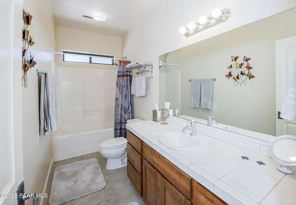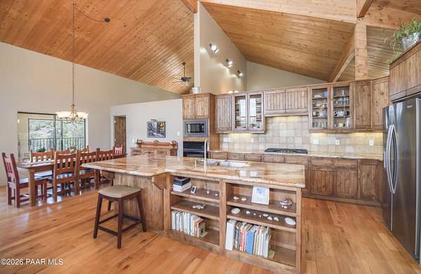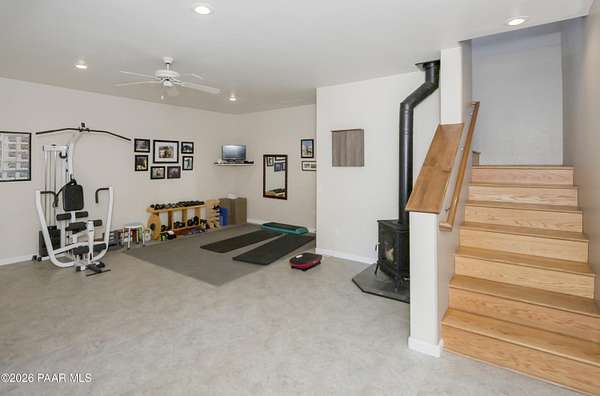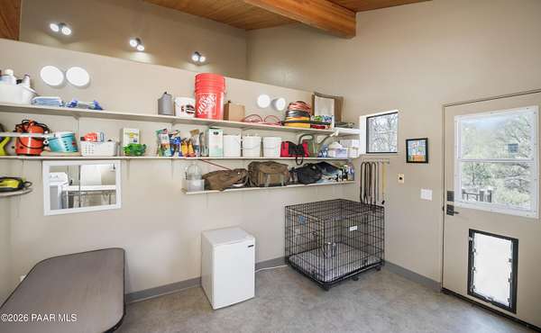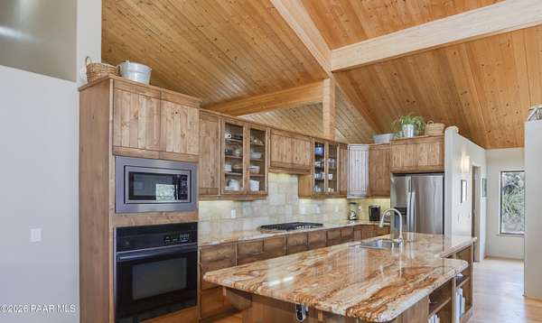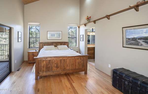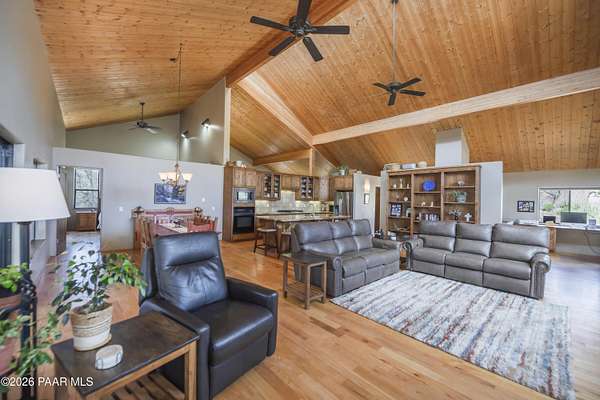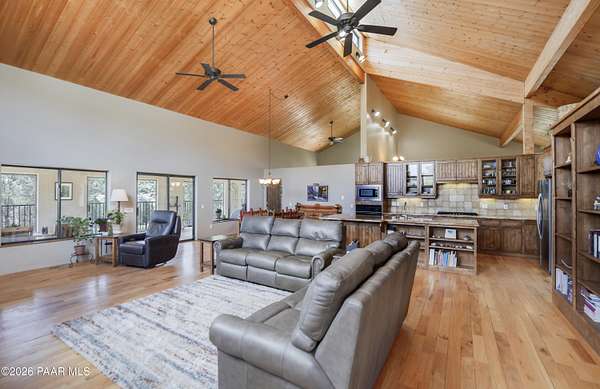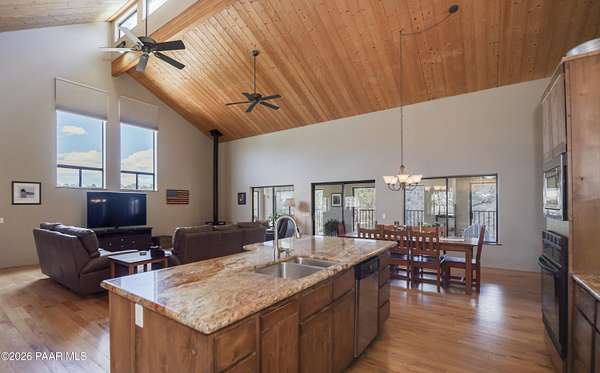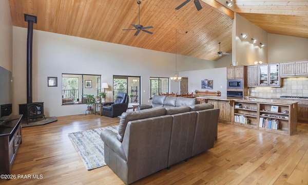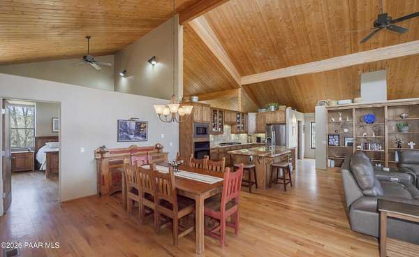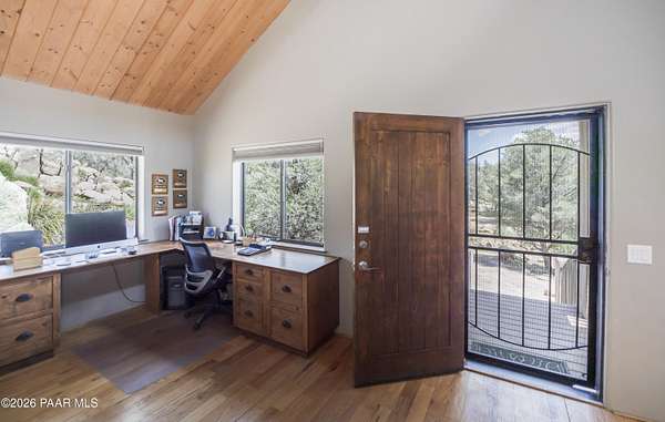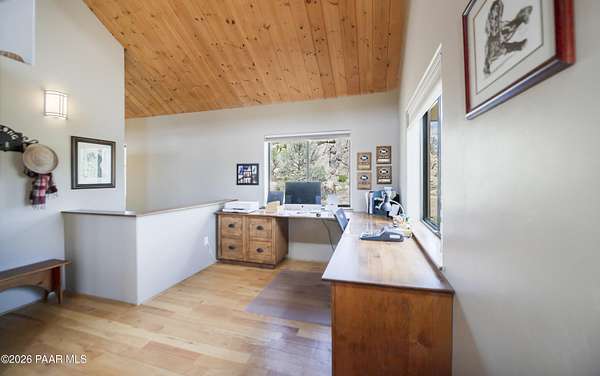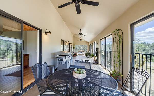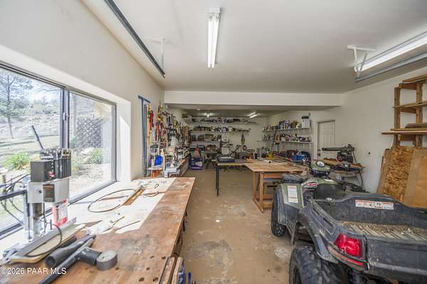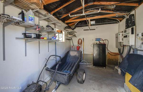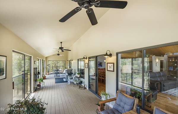 Off-Grid Arizona Homestead on Nearly 30 Acres | Solar Power | Private Well | No HOA | Horse PropertyDiscover a rare opportunity to own a private off-grid homestead in the Weaver Mountains on nearly 30 acres of scenic Arizona land. Located behind a locked gate just 3.7 miles down a private dirt road, this property offers the privacy, independence, and wide-open space buyers are searching for.Situated at just under 5,000 ft elevation, the property enjoys cooler mountain temperatures, four mild seasons, beautiful views, and a seasonal creek, making it an ideal escape from the desert heat. Surrounded by junipers and pinion pines, the setting provides both natural beauty and exceptional privacy.The 3,040 sq ft custom two-story home was designed for efficient off-grid living using Structural Insulated Panels (SIPs) for superior insulation and energy efficiency. The home is also positioned to take advantage of passive solar heating and cooling, while two propane stoves provide additional comfort in winter. A durable metal roof adds long-term reliability.Inside, the open floor plan features soaring pine cathedral ceilings, a spacious kitchen with granite countertops, built-in appliances, and a large island with sink and storage, and plenty of natural light throughout.Additional living and workspace highlights include:- 480 sq ft glassed and screened Arizona Room with mountain views- Main-level primary bedroom, office, kitchen, and laundry- 3/4'' solid red oak flooring on the upper level- New plank vinyl flooring on the lower level- 608 sq ft workshop with overhead door that can also function as a tandem 2-car garageThe property is well-equipped for off-grid living, homesteading, and outdoor recreation, featuring:- Private well with 5,000 gallon water storage tank- Solar-powered well pump- Dedicated solar equipment and battery building- Oversized detached carport- Two-bay covered RV parking- Fully fenced backyard with motion lighting- Irrigated and enclosed garden area- Custom in-ground cook pit for outdoor gatherings- Firewise mitigation completed Spring 2023With minimal community restrictions and NO HOA, the property provides flexibility for horses, livestock, gardening, recreation vehicles, or additional structures.This one-owner home has been carefully maintained and offers a unique chance to own a self-sufficient Arizona mountain property with acreage, privacy, and off-grid infrastructure already in place.If you're searching for Arizona off-grid property, acreage homes, solar-powered homes, homestead land, or horse property, this exceptional retreat is one you don't want to miss.