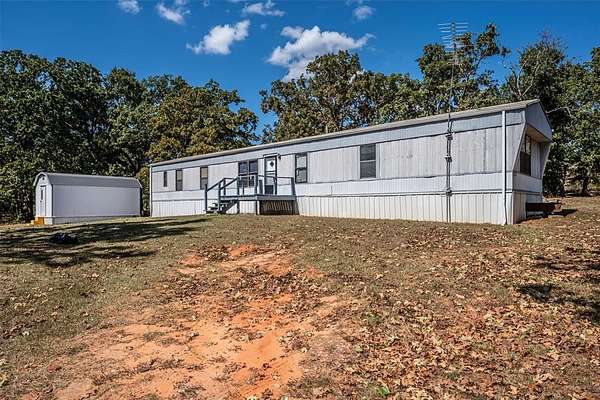 Discover peaceful rural living with this 1994 single-wide mobile home set on 2 beautiful acres, about 40% wooded for natural privacy and shade. The property is wire-fenced on two sides, providing plenty of space for pets, gardening, or hobby farming. You'll love the newer storm shelter for peace of mind and the 20x10 storage shed for all your tools and outdoor gear. Located less than half a mile off the pavement, this property offers easy access while maintaining that quiet country feel. Enjoy being just 10 minutes from the nearest local store, 30 minutes to a Super Walmart, and an easy 30-minute commute to Tinker Air Force Base. Whether you're looking for an affordable homestead, weekend getaway, or investment opportunity, this property delivers the perfect balance of seclusion and convenience! Property will not qualify for traditional financing, will need to be a cash purchase or in house personal bank loan, Single Wide manufactured home with tongue still attached. Strictly Sold AS-IS, No Repairs Shall Be Made * NO Showings Friday Evenings or Saturdays