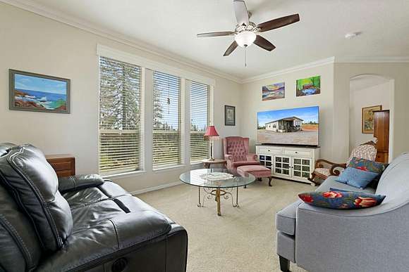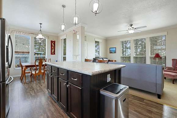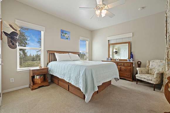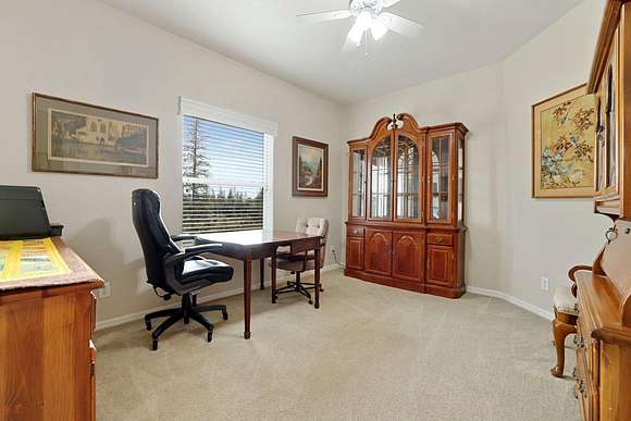 Welcome to your cozy home in the pines! Enjoy this peaceful five acre mountain retreat, with a plentiful wildlife and spectacular views. This home boasts 9' ceilings and several 7' windows to create a spacious feel and allow abundant natural light to saturate the living spaces. The kitchen opens to the living and dining areas, with stainless steel appliances, plenty of storage, and large island to create gourmet meals. The generously-sized master bedroom ensuite has a walk in closet, double sinks, huge shower with bench seat, separate toilet, and expansive linen/storage cabinets. The office/den is perfect for a work from home lifestyle, with ample space for 2 desks, or desk and guest bed. The workshop with a loft provides more opportunities for storage, crafting, small business, etc. The Generac generator automatically turns on during power outage. There are groceries, caverns, hiking, rivers, wine tasting, and community events within short drive. Quiet but friendly neighbors!