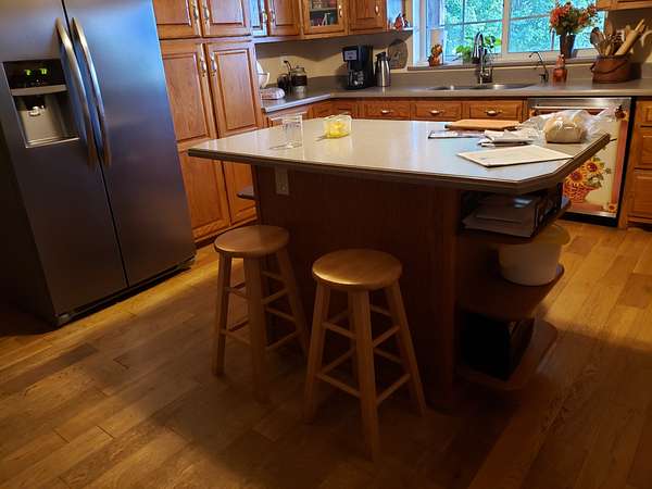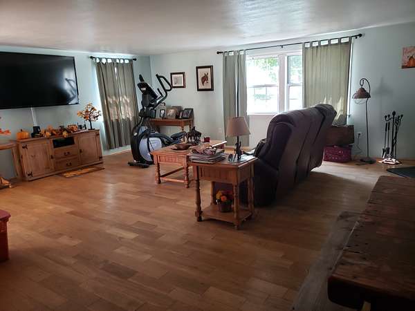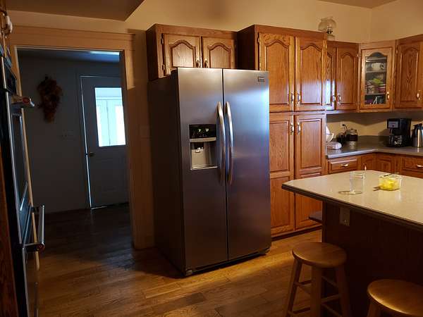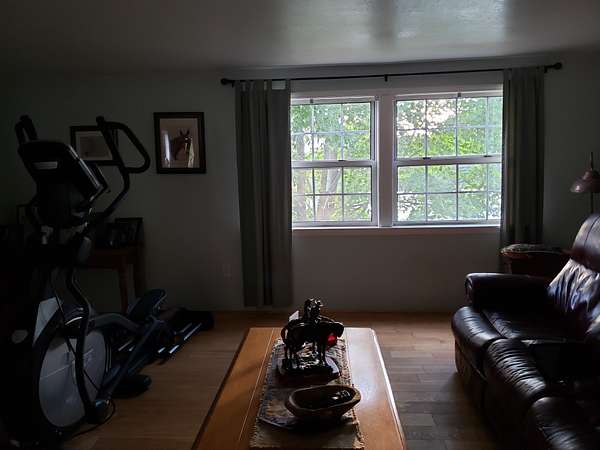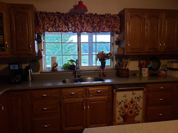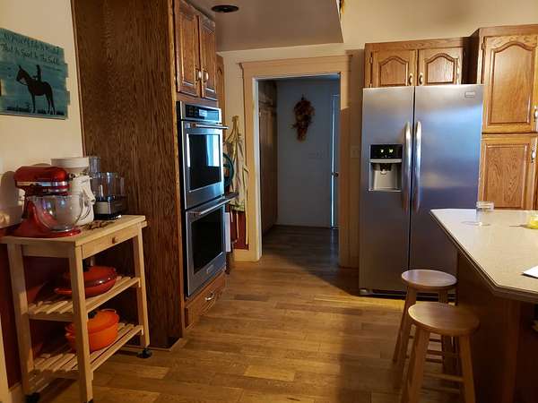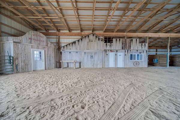 Wood stove in living room to keep you warm on those chilly nights. Big horse barn, with 6 -12 x 12 stalls , rubber mats with automatic Waters and GFI receptacles for fans. Wash rack on cement pad with spray boom.Also an insulated indoor riding arena with Drop lights , 3 additional stalls. Heated viewing room heated bathroom.