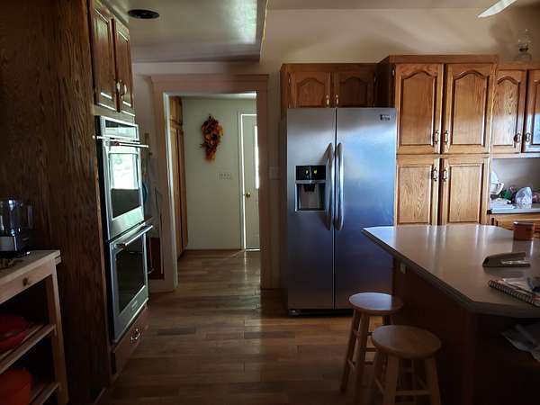 Enjoy the seclusion of this beautiful horse property homestead. Updated kitchen with double wall oven, stainless steel KitchenAid appliances. Hardwood floors throughout the house. Jetted tub in bathroom. Fish off your own dock.
