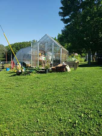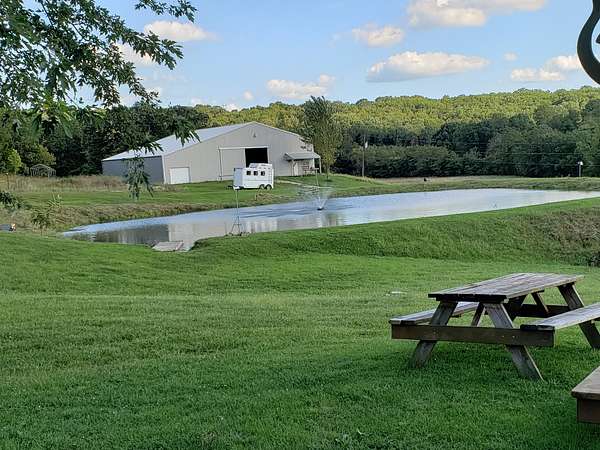 Stalls previously rented for 500. ea/ monthly with automatic waterer stall mats, tack room, fan system. Heated Viewing room has, hot cold water, sink, cabinets, fridge. Heated insulated breeding/whelping room with drain and hitching post. Adjacent trails throughout the entire property. Finish off the 2nd home for a Mother in Law or hunting cabin. There's a camping site on the back of the property near one pond that's your own private getaway. Abundant Wildlife, hunt and shoot right on your own property and enjoy the Smokehouse for your harvest. Two Greenhouses ,mature strawberry patch multiple fruit and nut trees,grape vines, berry bushes. Income-producing Hayfield , egg sales and stalls. Large haybarn that stores 2000 bales. Large insulated building formerly used for a working dog kennel with sink,water heater, and washer dryer hookups, French drain. Has large roll up doors that also can be used to house tractors, RV and equipment for a machine shop Additional outbuildings. Chicken coop. 50' pipe round pen. Firewood barn, wood furnace. You'll have a lifetime of firewood right on your own property as well. Fenced and cross-fenced.