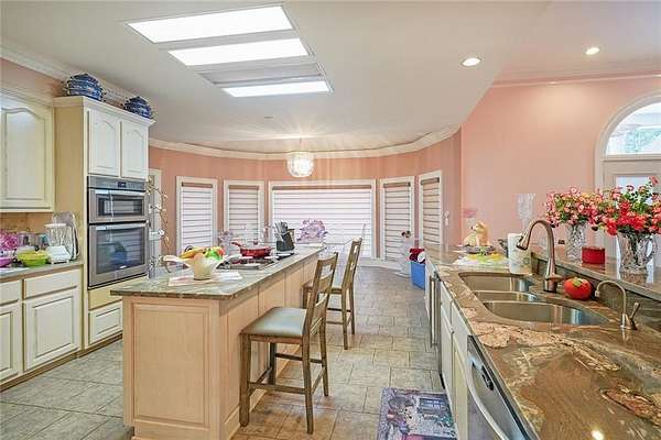 Set on 10.55 private, level acres, this exceptional estate offers space, privacy, and flexibility rarely found in today's market. With over 7,200 square feet, this custom residence is designed for gracious living, entertaining, and multi-generational use - all just minutes from everyday conveniences. The main home features 4 bedrooms and 4 full baths, with multiple additional rooms that can easily serve as extra bedrooms, offices, or flex spaces. A primary suite on the main level, in-law floorplan, and a fully finished basement provide unmatched versatility. Interior highlights include high and tray ceilings, hardwood and tile flooring, built-ins, walk-in closets, and abundant natural light throughout. The heart of the home is the expansive kitchen, offering a large island, breakfast bar, walk-in pantry, solid surface countertops, and a second kitchen, ideal for entertaining or extended living arrangements. Multiple living areas include a family room with fireplace, media room, game room, exercise room, and private office spaces. Zoned heating and cooling and two fireplaces ensure comfort year-round. Step outside to your own private retreat featuring an in-ground pool, covered deck, and patio, easily accessible from the main living areas - perfect for indoor-outdoor living and hosting gatherings. The property also includes a detached second residence, currently used as a rental, offering added flexibility for future owners (income potential, guest house, or extended family use). Additional features include a 3 car attached garage with side/rear entry, garden areas, shed(s), and no HOA restrictions - all set against a peaceful, estate-style backdrop. This is a rare opportunity to own a private luxury estate with acreage, amenities, and versatility, ideal for buyers seeking space to live, work, and entertain without compromise.