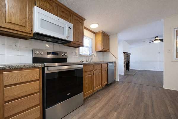 - Dishwasher, Electric Range, Electric Water Heater, Microwave, Microwave Hood Fan, Self Cleaning Oven