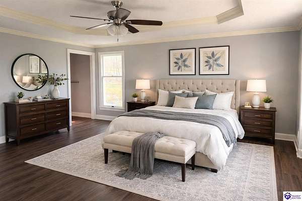 - Bookshelves, Ceiling Fan(s), Tray Ceiling(s), Walk-In Closet(s)