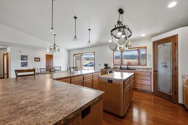 Property presented by Ashley S. Goodrich, SRS with RE/MAX In The Hills (605) 645-2479. If you are looking for a once in a lifetime opportunity in Spearfish, South Dakota....I just might have what you are looking for! Here you have immaculate main level living in this sprawling custom ranch style home with approximately 2,138 sq. ft. It boasts gorgeous hardwood floors throughout, a very open concept living area, kitchen and dining room. The view of Crow Peak right out of your dining and kitchen windows bring the lovely Black Hills feel right into your home! Hosting family, guests is a treat in this very functional 3 bedroom, 2 1/2 bathroom home! The master suite is its own oasis which is spacious, provides his and her walk in closets, a soaker tub and a walk in tile shower. The bedrooms are spacious and have incredible views in every direction. ON TOP OF ALL OF THAT...there is a newly constructed 36x55 stick built insulated and heated shop that provides two 50 AMP services for you RV storage or power tools for hobbies. This brand new shop has a custom loft accented with detailed woodwork. There are floor drains in both the detached shop and in the over sized 39x31 attached 3 care garage. PLENTY of room to store ALL of your toys. If that is not enough, there is a nicely appointed greenhouse all set up and ready with drip lines and everything you need to grow all year long. A 24x12 shed also allows plenty of storage for all of the gardening tools to go with your sweet set up!