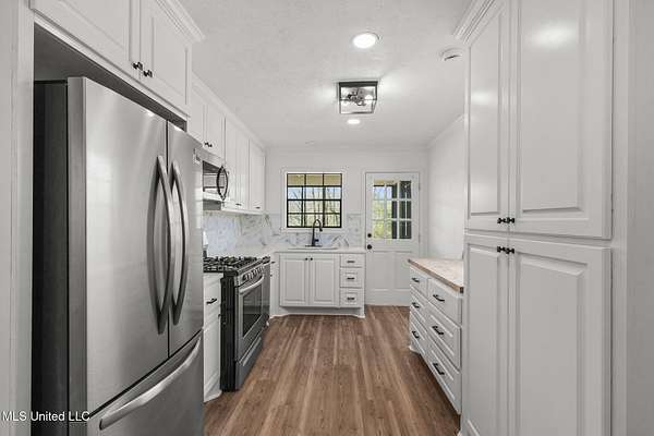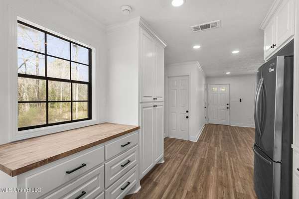 Fully renovated and ready for a fresh start, this 2 bed, 2 bath home on 7.3 acres offers the space you've been craving with the convenience you still want. Built in 1989 and updated from top to bottom, the home features new HVAC, plumbing, electrical, windows, water heater, fixtures, plus all-new cabinets and stainless appliances (refrigerator included). Inside, enjoy durable wood flooring, a bright, updated kitchen with butcher block and quartz countertops, and a smart layout with laundry located off the main living area for easy access to both bedrooms. Both bedrooms are true bedrooms with closets featuring built-in organization, and the primary suite includes a private en suite bath. Outside, a long drive leads to peaceful open land-ideal for gardening, chickens, hobbies, or simply room to breathe. Need workspace? The 40'x58' open-air pole barn and a 12'x20' shed with electricity provide excellent storage and project space. No HOA, no flood zone, and a survey is available.