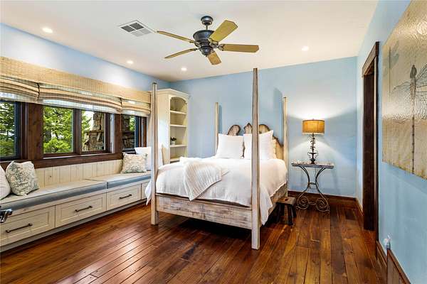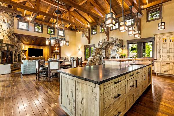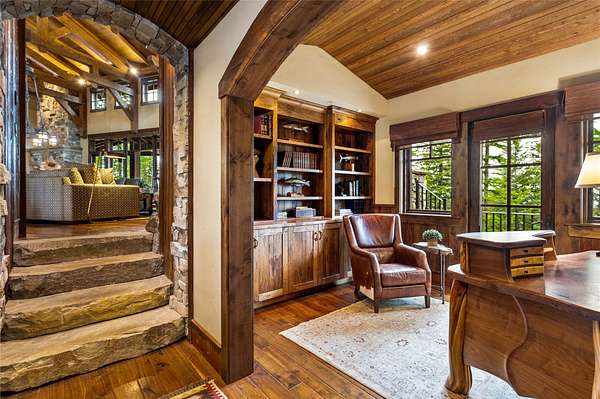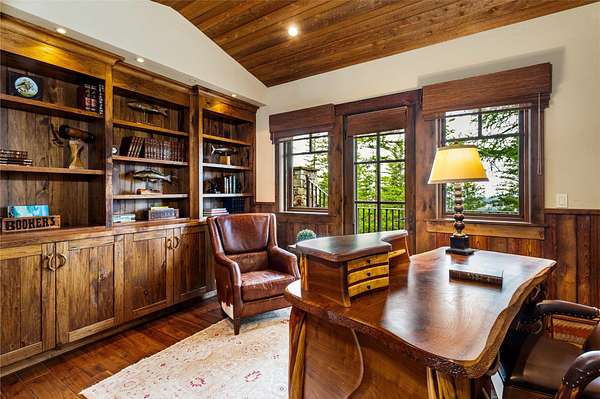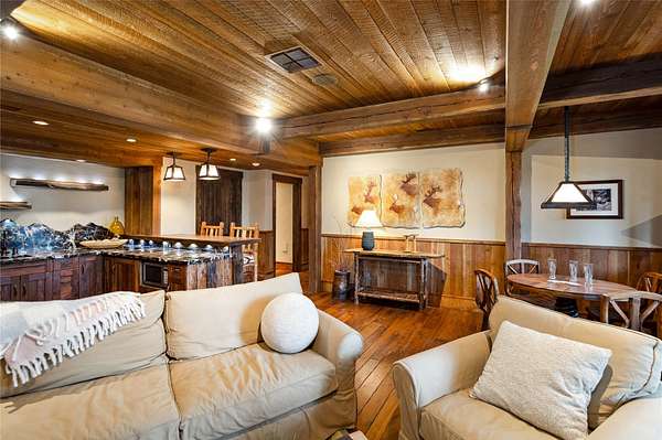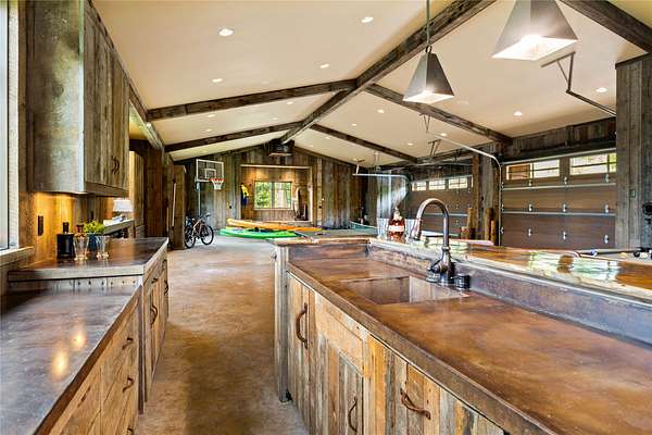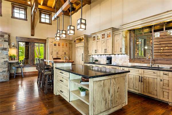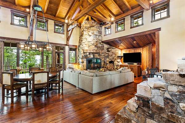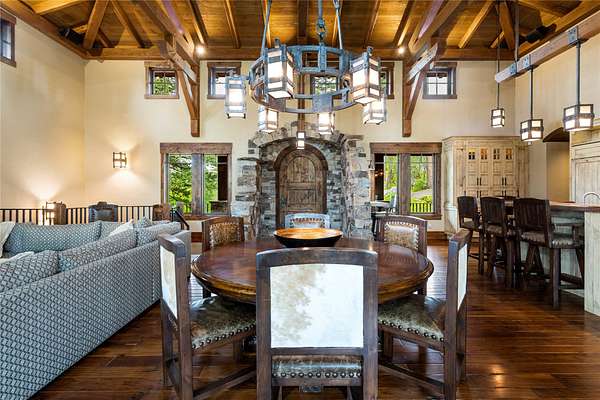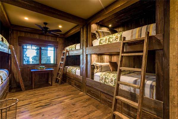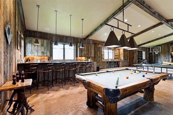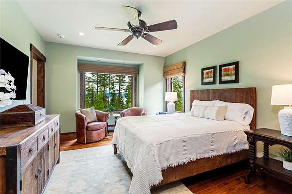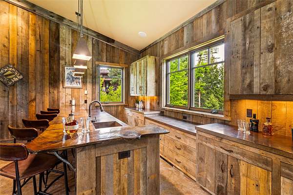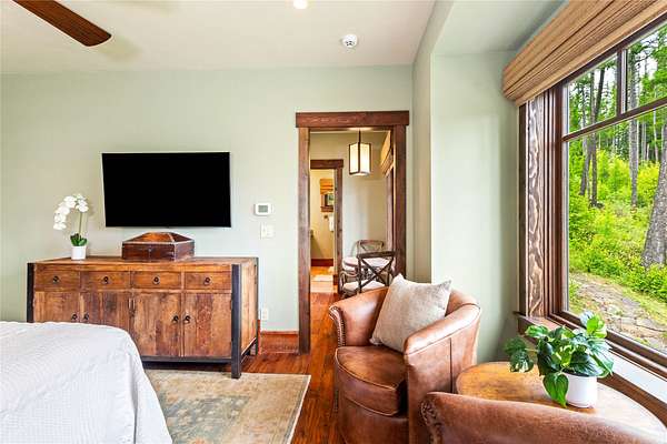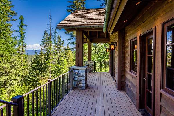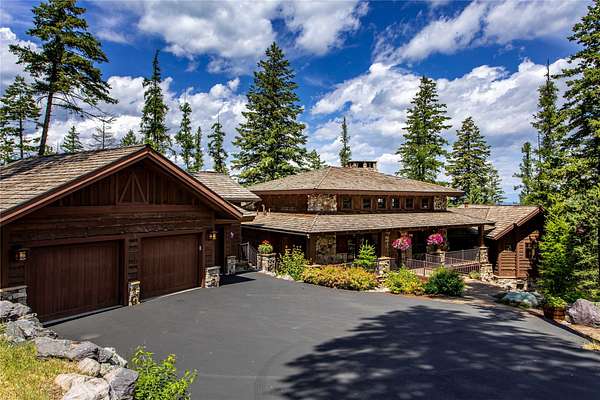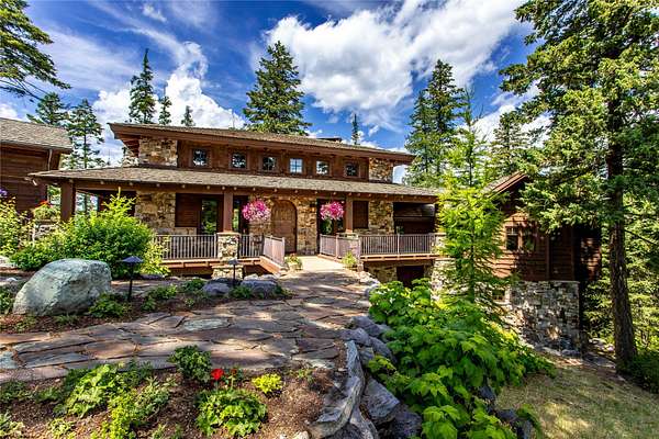 Montana Living at its finest in Saddlehorn - Custom Home by Wind Dancer Construction Turnkey and timeless, this elegant western-inspired retreat is an entertainer's dream. Situated on 2.34 acres across two lots in the prestigious Saddlehorn community, this custom-built masterpiece captures breathtaking views of Flathead Lake and the Swan Mountains. Crafted for gatherings and luxurious living, the great room in the main residence features a soaring true timber-frame ceilings, a dramatic stone fireplace, and refined finishes throughout. The gourmet kitchen is a chef's delight-spacious, functional, and seamlessly connected to the living and dining areas for effortless entertaining. A thoughtfully designed private wing includes an office and a spectacular primary suite featuring its own stone fireplace, private deck access, and an elegant ensuite bath-a true sanctuary for relaxation and privacy. Also included is a slip at HH marina. A total of five (5) bedrooms sleeps many guests with the primary and two additional bedrooms in the main house along with a detached guest room. In the main residence the two luxury bunk rooms, one with six bunks and the second with four bunks and a queen bed, offer ample sleeping space for guests, blending comfort with sophisticated design. Just a step away from the main gathering space is an expansive covered deck with outdoor fireplace - perfect for entertaining in any season. A detached 2,016 sq. ft. toy barn with a private bar is perfect for hobbies, storage, or entertaining, and a separate guest apartment provides privacy and comfort for visitors. A private 26' boat slip in the protected Hidden Harbor in Woods Bay is also included in the sale, creating immediate access to unforgettable days on Flathead Lake. Additional Saddlehorn community amenities include two luxury clubhouses, a saltwater pool, 6+ miles of scenic trails, and Flathead Lake access. Simply bring your toothbrush and a suitcase as the home is being sold turnkey with all furniture, linens, plates, glasses, kitchen items and tools. Additionally, a pool table, kayaks and bicycles are being sold with the property - this property is ready for maximum fun! This is Montana living at its finest-where craftsmanship, lifestyle, and natural beauty meet in perfect harmony.