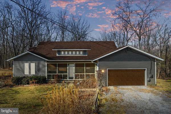 Welcome to this beautifully designed one level rancher nestled on 2.5+ private acres just minutes from Shepherdstown. This 3 bedroom, 3 bath home offers nearly 2,000 square feet of thoughtfully designed living space with an open concept layout and soaring 11 foot ceilings in the main living area. Rich red oak hardwood floors flow throughout the home, leading into a spacious living room anchored by a gas fireplace with a solid walnut mantle. The kitchen features granite countertops, a center island, and ample cabinetry, seamlessly connecting to the dining and living spaces. It's perfect for both everyday living and entertaining. The primary suite offers a peaceful retreat with a vaulted ceiling, generous layout, and an en-suite bath complete with dual vanities. Two additional bedrooms, a office/flex space, and three full bathrooms provide flexibility for today's lifestyle. Enjoy the tranquility of a private wooded setting while still being conveniently located near Shepherdstown, Charles Town, and major commuter routes to Maryland and Northern Virginia. Ideal for buyers searching for a one-level home, ranch-style home, main-level living, homes with acreage, private lot, move-in ready home, open floor plan, and homes near Shepherdstown WV. A rare combination of privacy, modern design, and single-level convenience, this home is a must see!