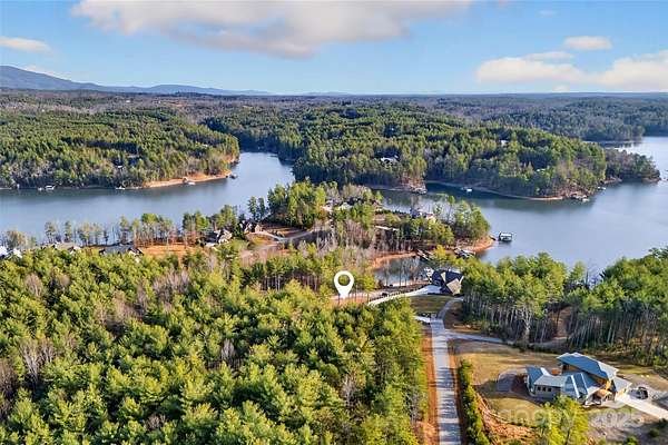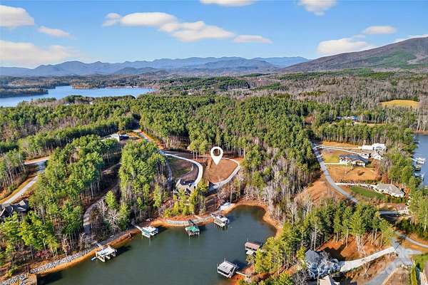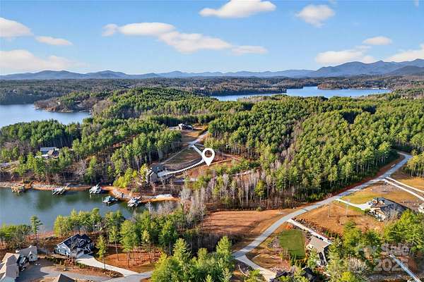 This remarkable waterfront property on beautiful Lake James in WNC offers an exceptional opportunity. This premium lot offers stunning views of Hawksbill and Shortoff Mountains in the Linville Gorge, a level waterfront with a beach, plus a double-decker, double-slip dock (one side currently being used as a sitting area and jet ski slip, but can be converted to a boat slip), complete with jet ski ports and expansive open water views. Additionally, a driveway and building site have been thoughtfully cleared, preparing the way for your dream home. Water is readily available on-site through a shared well, and the community provides access to an outdoor pool and a community dock. All you need to bring is your sunscreen. Need gate code.