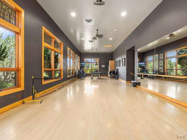 LUXURY RESORT LIVING ESTATE W/GYMNASIUM! CUSTOM BUILT BY COMMERCIAL BUILDER WHITLOCK CONST, 2.5 ACRES IN LIBERTY POINT WITH BREATHTAKING MOUNTAIN & RESERVOIR VIEWS. PROPERTY HAS ALMOST 23,000 SQ FT W/2 BUILDINGS. THE HOME INCLUDES 5 BEDROOMS, 7 BATHS & HEATED 6 CAR GARAGE W/SNOWMELT SYSTEM. MAIN LEVEL FEATURES SLATE & BRAZILIAN CHEERYWOOD FLOORS, LIVING ROOM WITH 24' CEILING, 2-WAY GAS FIREPLACE SHARED W/FORMAL DINING ROOM W/VENETIAN PLASTER WALLS, GOURMET KITCHEN WITH HUGE ISLAND & WOLF APPLIANCES, BUTLER'S PANTRY, BREAKFAST NOOK, HEARTH ROOM, FAMILY ROOM, LIBRARY WITH SPIRAL STAIRCASE, 3 BEDROOM SUITES WITH WALK-IN-CLOSETS, POWDER ROOM, MAIN LAUNDRY & ELEVATOR. UPPER LEVEL HAS THE MASTER SUITE WITH SPA BATH & 2 HUGE WALK-IN CLOSETS W/LAUNDRY & BALCONY DECK, 5TH BEDROOM, 2 OFFICES, UPPER LIBRARY, CEDAR CLOSET AND SITTING AREA. LOWER LEVEL HAS THE GARAGE, THEATRE ROOM, 1/2 & 3/4 BATH WITH STEAM SHOWER FOR POOL USERS, MASSAGE ROOM, WINE CELLAR, SAFE ROOM, LAUNDRY/KITCHEN & 2 STORAGE ROOMS. GYM BUILDING HAS A FULL SIZE INDOOR BASKETBALL COURT WITH BLEACHERS, 1/2 BATH & KITCHEN, HUGE EXERCISE ROOM, LOCKER ROOM, DANCE/GAME ROOM W/KITCHEN, & 2 BEDROOM APARTMENT WITH BATH, KITCHEN, LIVING ROOM, LAUNDRY, & 3 STORAGE ROOMS. BACKS UP TO BLM PROPERTY, W/NO BACK NEIGHBORS. UPGRADES INCLUDE WILLIAM OHS CABINETS, MARBLE & KEN WILLIAMS TILE FLOORS, HUGH'S CO. WOODWORKING, 40 FT HEATED LAP POOL, YEAR-ROUND HOT TUB, MATURE LANDSCAPING, PRIVACY WALLS, TREES, BUSHES, FLOWER GARDENS & MORE!