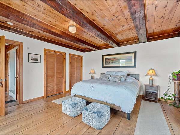 A rare opportunity to own a cherished Vermont farm set on 218.5 acres protected under the Vermont Land Trust. In accordance with the Land Trust agreement, the property must continue to be used as a working farm. Inside, the home is filled with classic charm, featuring a main-floor primary bedroom with peaceful sunrise views & two upstairs bedrooms with storage & freshly cleaned carpets. Outside, the farm is ready for use with two hoop houses - one for vegetables, the other sheltering up to 40 cows - plus a milk house currently used as a chicken coop. The horse barn includes two stalls, a tack room, & hay storage for approximately 1,000 bales. Additional features include fencing for mini pigs, a large cement compost/manure bunker, a paddock with water access, & established gardens with perennials, garlic, apple trees, & two walnut trees. The property also has a 6,000 sq. ft. steel barn on a 6-inch slab, a detached garage, & an insulated workshop with a 12,000 lb. truck lift. An electric fence system, powered from the workshop, encloses the entire farm. Three spring-fed ponds - two newly built for irrigation and a third in the woods - enhance the landscape. For maple sugaring, a 20' x 23' sugar house sits behind the sugarbush with a cement floor, tin roof, full wiring, & stick-built construction (generator required). A special opportunity to embrace Vermont's beauty, with everything in place for farming, homesteading, and simply savoring the peace of country life.