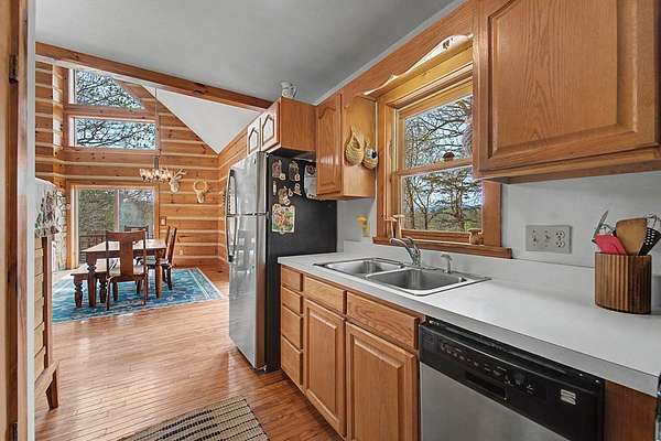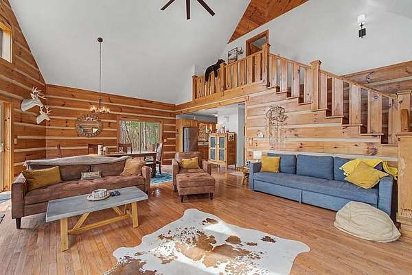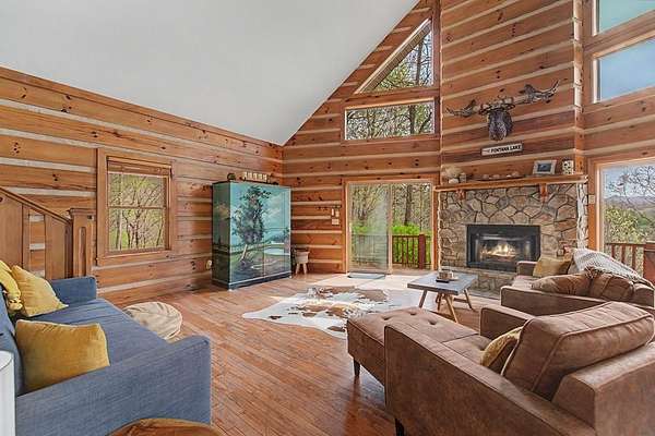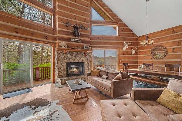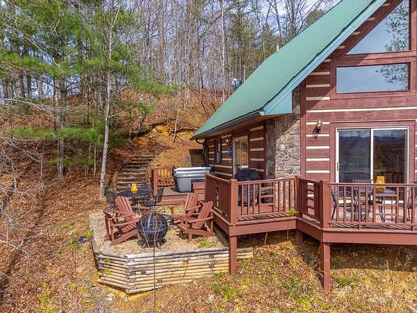 Tucked away on 4 private acres in Fontana Lake Properties, this cozy mountain cabin is all about views, privacy, and that true getaway feel. Offered fully furnished and currently a successful vacation rental, it's ready to enjoy or keep producing from day one. This 2BR/2BA retreat features warm wood interiors, vaulted ceilings, and a wood-burning stone fireplace that makes the living space feel like a true mountain escape. Large windows bring in natural light and frame the surrounding mountain views. Step outside to the spacious deck, unwind in the hot tub, and take in the peaceful, wooded setting perfect for morning coffee or evenings under the stars. Just minutes to Fontana Lake and Bryson City, you get the best of both worlds: tucked away, yet close to everything. A perfect second home, investment, or place to simply slow down and enjoy the mountains.