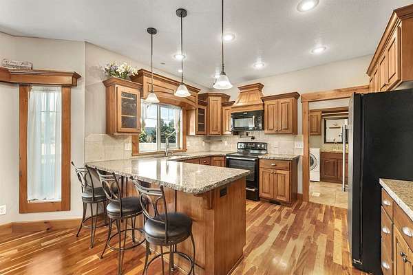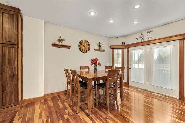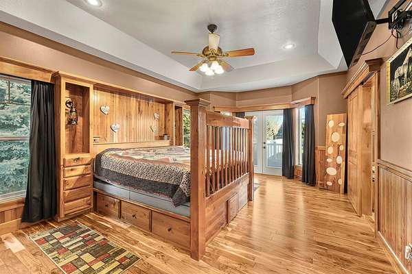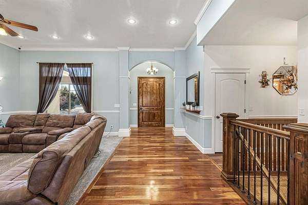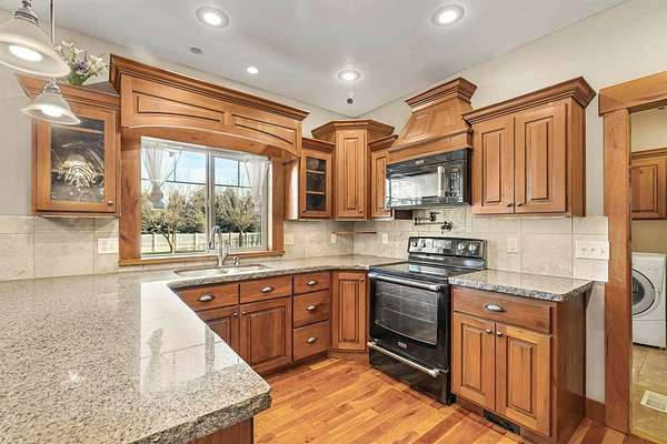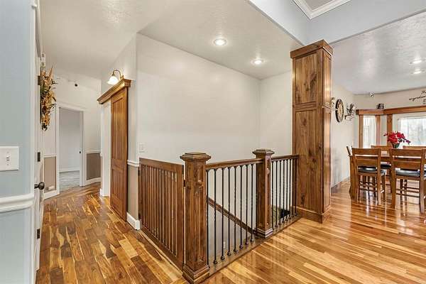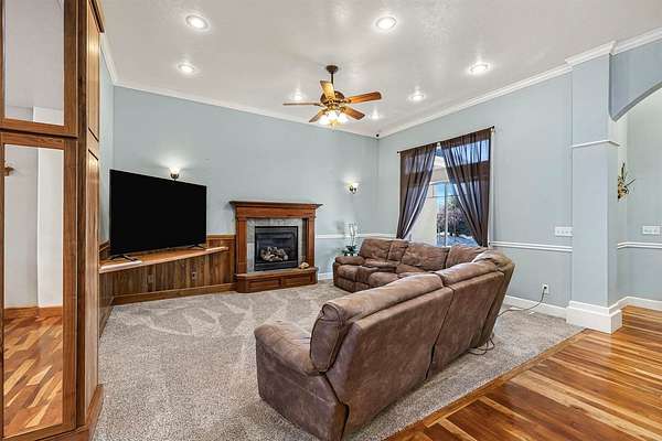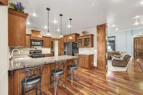 Nestled near the Greenbelt and Snake River, this meticulously crafted 2006 home blends elegance, comfort, and functionality. With expansive living areas, a full basement, and an extraordinary hobbyist shop, this property is perfect for those who value space, craftsmanship, and lifestyle. Inside, the 4-bedroom, 2.5- bath home welcomes you with rich cherry wood floors, custom cabinetry, and an open concept layout designed for both everyday living and entertaining. A built-in central vacuum, upgraded HVAC, and abundant storage ensure convenience. The master retreat offers a soaking tub and walk-in closet, while the full basement provides flexible space for a gym, game room, or extra storage. Step outside to a private backyard sanctuary featuring mature trees, grapevines, and a lush garden. The oversized Trex deck and patio are ideal for gatherings, and the fully fenced yard keeps pets safe. An attached 3 - car garage with custom cabinetry adds organization and functionality. For hobbyists and collectors, the 52 x 76 heated shop ( nearly 4000 sq ft ) is unmatched. Designed with 4 insulated bays. It includes: Bay 1 (24x38) Wood shop with dual power, finished floor, and wood stove. Bay 2 (28x50) 4- car garage with epoxy floors, mezzanine, and workbench. Bay 3: Two RV bays with 14' doors, hickory cabinets, loft, hoist, and covered patio access. Bay 4 (12x24) Ideal for ATV's, lawn equipment, or gear. Additional perks include unlimited domestic and canal water rights for just $100/month. This one-of-a-kind property truly has it all- schedule your private showing today!
