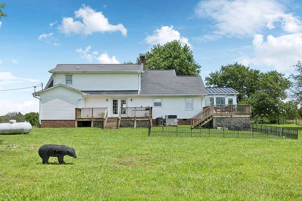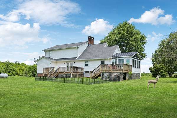 MOTIVATED SELLER-PRICE IMPROVEMENT! Discover the perfect blend of luxury, privacy, and modern country living just outside the city. This captivating Cape Cod-style home in Middle Tennessee offers 3 bedrooms, 3.5 bathrooms, and endless charm across nearly 23 acres of scenic land - perfect for farm acreage buyers or anyone craving a peaceful lifestyle with room to grow. Imagine mornings sipping coffee on one of two expansive back decks while deer graze in the distance, afternoons tending to horses or gardens, and cozy evenings by the wood-burning fireplace beneath a grand brick mantle. The sunroom is a bright haven for plant lovers or those seeking a serene reading nook, while the country kitchen delivers timeless style with ample cabinetry, breathtaking views, and all appliances included. Hardwood floors flow throughout spacious common areas, and the full basement provides storage, a one-car garage, and storm-safe shelter. The land is a perfect mix of rolling pastures and mature woods with a pole barn and multiple outbuildings - fully equipped for homesteading, farming, or outdoor recreation. Located in a sought-after rural setting with Greenbelt tax status, no HOA, and no city taxes, this home checks all the boxes for buyers seeking tranquility, function, and long-term value. Whether you're upsizing for space or stepping into your dream of country life, this is the one you've been waiting for! Also, there is plenty of unfinished SF that is in the basement and the Seller was making an unfinished room upstairs a home theatre. (that already has sub floor) The theatre room was going to be able to sit up to 4 movie size recliners! So you are looking at PLENTY of unfinished square feet! Also, the first floor of the barn has 3,780 SF, the second floor(hay loft) has 2,205 SF and the chicken coop has electricity (right at 728 SF) In these areas, opportunities like this are rare - schedule your private tour and secure your own slice of Tennessee paradise!