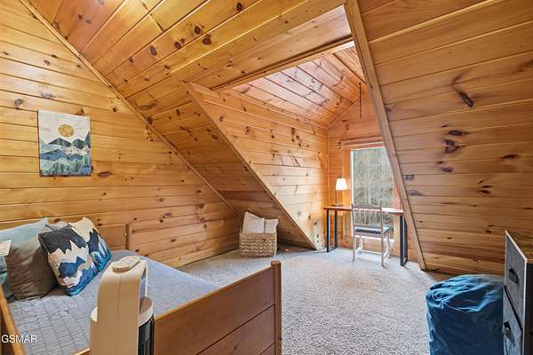 Discover relaxation in this stunning, freshly renovated 4-bedroom, 2-bath cabin on the tranquil banks of Dunn's Creek! This cabin has only been available on Airbnb for just 10 months and is already boasting 33 glowing reviews with a 4.85-star rating! Nestled on over 5 acres of unrestricted waterfront land, this cabin is not only a getaway for relaxation but also offers the exciting potential for expansion with a separate block foundation already in place! On the main level, you have a large master bedroom with a private deck and an oversized master bathroom. There are 2 other bedrooms with a shared bathroom, as well as a large open living, dining, and kitchen area. The rear deck wraps around one side of the cabin and overlooks the large creek below! Upstairs, you can find the 4th bedroom outfitted with 4 single bunk beds, a bonus room equipped with a futon trundle bed, and a loft space featuring an air hockey table and a roll and score arcade game! The owner has invested well over $150,000 in both aesthetic enhancements and essential structural maintenance updates, proactively addressing common owner neglect. The renovations encompass new stainless steel kitchen appliances, high-quality fixtures, stunning granite kitchen countertops paired with a chef-grade sink, and a stacked washer/dryer. The upgraded master bathroom features a custom tile shower that enhances the overall experience and comfort of the home. The new durable commercial-grade roof was built to impress, featuring a standing seam design along with fascia and gutters equipped with gutter guards to minimize maintenance and protect your investment from pesky carpenter bees. You can unwind in the new 7-person hot tub, complete with lighted jets and water fountains, all easily controlled remotely by the user. A high-efficiency 80-gallon hybrid water heater offers remarkable energy savings. In addition, a full crawlspace encapsulation with enhanced joist support ensures durability and comfort. The home is further enhanced with a whole-home water filtration system that includes ozonating, oxidizing filtration, and UV treatment for pure, clean water. For a further aesthetic enhancement, a new solid, nail-down hardwood floor graces all three downstairs bedrooms with beauty and style. A newly graded and paved driveway welcomes you, complemented by the new decking, which includes structural reinforcement, creating an inviting outdoor space for gatherings and relaxation. Foundation protection was made a priority by the recent excavation work and integration of a French drain system designed to effectively intercept and redirect surface and ground water away from the foundation. This gorgeous cabin is more than just a property; it's an investment in lifestyle, relaxation, and potential. With its impressive improvements and breathtaking waterfront location, it offers an unparalleled opportunity to embrace the mountain getaway you've always dreamed of owning. Call and schedule a showing today!