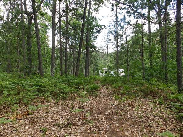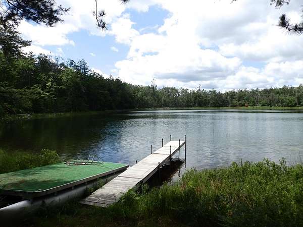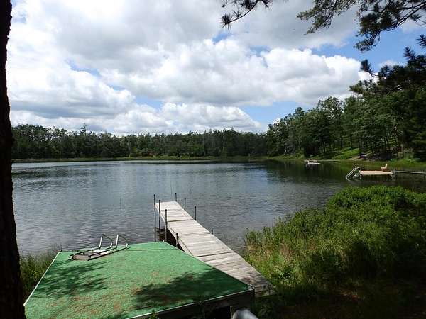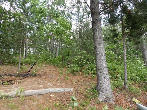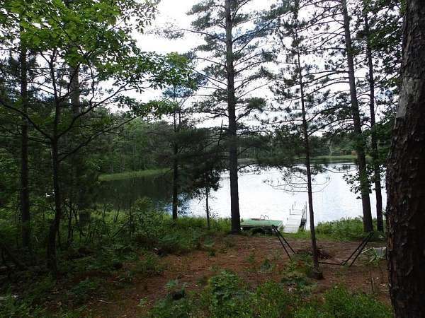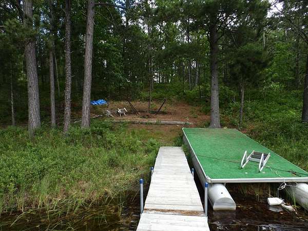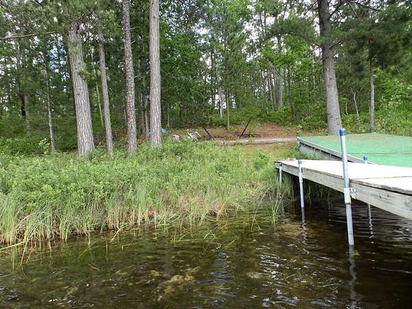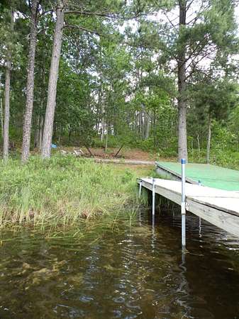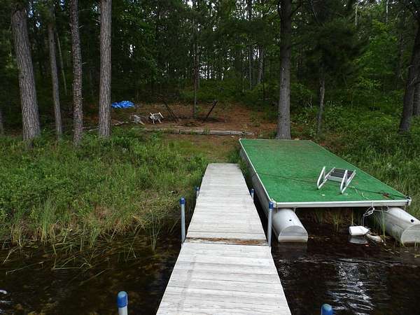 Rare to find over 10 acres and private lakefront but here it is...!!! Enjoy sunset views on this 10.7 acre parcel with over 109 feet of frontage on private Dollar Lake. Great recreational property or bring plans to build your dream up-north home. This private neighborhood has several custom built homes, some on the lake and some off the lake. Property boasts mature hardwoods & poplar with a sloping terrain nearer the lake. Located close to West Twin Lake public access and 1,000s of acres of state land. Includes on site electric, newer camper trailer, dock and pontoon diving raft.