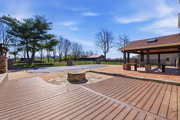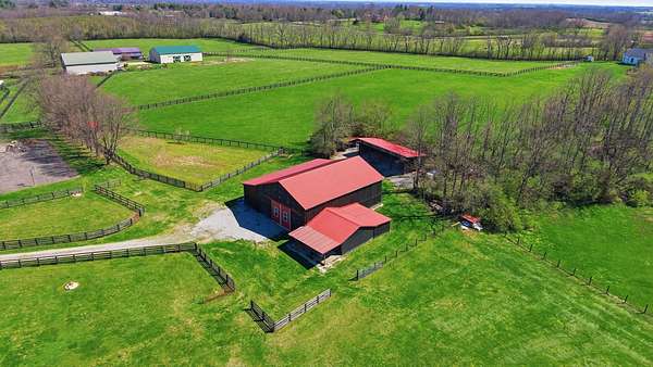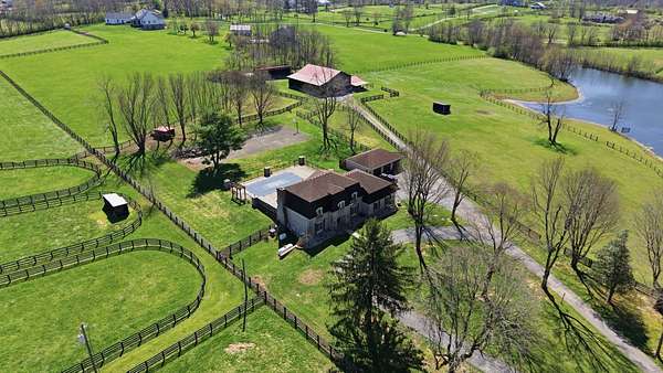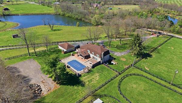 Location, location, location-centrally located with easy access to I-75, shopping, restaurants, and downtown. 15.1 +/- acre mini farm featuring a 2.5-acre stocked pond, gunite pool, and a five-bent tobacco barn converted into a six-stall horse barn (with hot/cold water supply, heated office, and tack room). 3,607 sq ft home built in 1953 and fully remodeled in 2016 with all-new electrical, plumbing, roof, appliances, and fixtures. Offers 4 bedrooms and 3 full baths (one bedroom converted to a large primary walk-in closet; easily converted back). Large, detached 3-car garage with updated Raynor garage doors. Primary bathroom features a large marble-tiled walk-in shower, wood tile flooring, double vanity, and infrared sauna. Expansive open kitchen with Sub-Zero refrigerator, Thermador gas range with double ovens, and large island with quartzite countertop. Oversized living room with custom barnwood built-in, wainscoting/shiplap, and adjacent storage room. Large first-floor laundry room with custom-designed double pantry closets. Generac whole-house generator. Unfinished basement with abundant storage space and gym/recreational area. Additional renovations in 2018 include a newly added automatic front entry gate with keypad and posts, as well as a Colorado-style outdoor patio with Trex decking and stone tiling. Property features V-mesh and four-board horse fencing throughout, along with multiple run-in sheds and equipment/livestock barns.