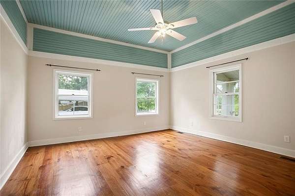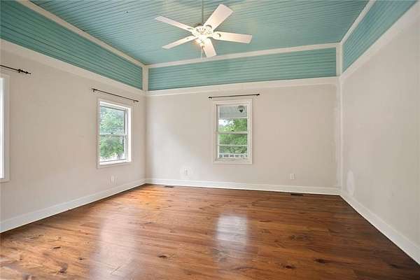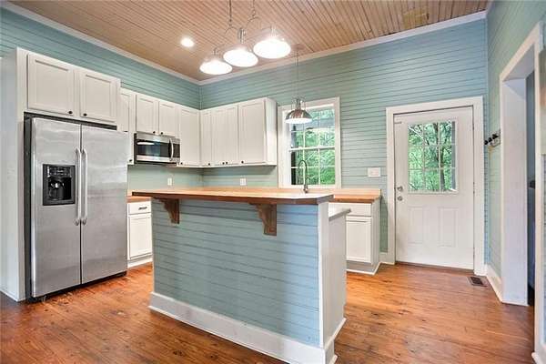 Cobb County Jewel5.25 acre level lot! This adorable and thoughtfully preserved farmhouse blends historic charm with contemporary updates. Featuring a classic white exterior accented by traditional black shutters, a distinctive standing seam metal roof and a welcoming front porch, this home is ready to capture your heart. Inside enjoy 10 foot ceilings and timeless architectural details. Original features such as the double sided non-functioning fireplace, 3/4 inch by 4 inch beaded pine walls and heart pine flooring honor the home's historic craftsmanship. Enjoy morning coffee or relaxing evenings on the expansive covered back porch. Surrounded by mature trees including oak and black walnut, lush greenery, and flowering shrubs, the property offers peaceful privacy just minutes from local amenities. Whether you appreciate historical character or envision adding your personal touch, this home offers endless possibilities. Outside entry basement is a hidden gem, with tons of space! Seller is offering owner financing to qualified buyers.