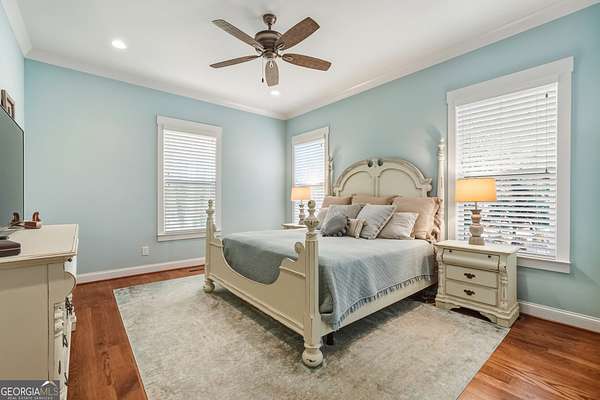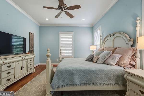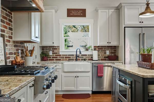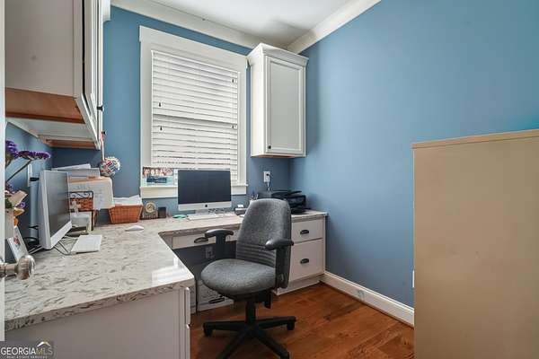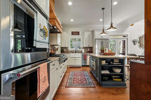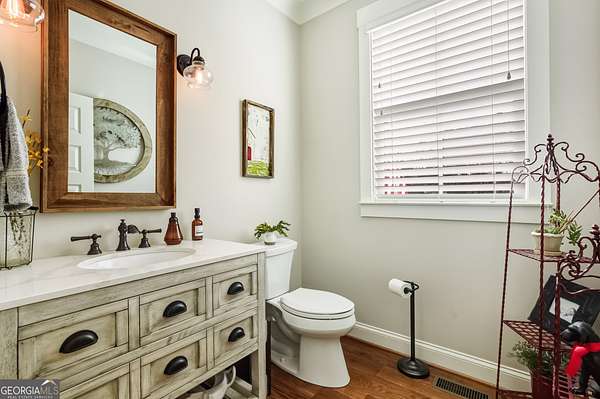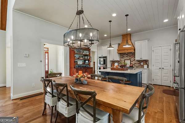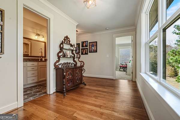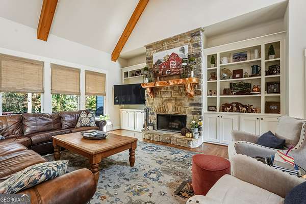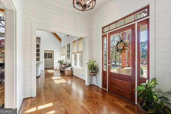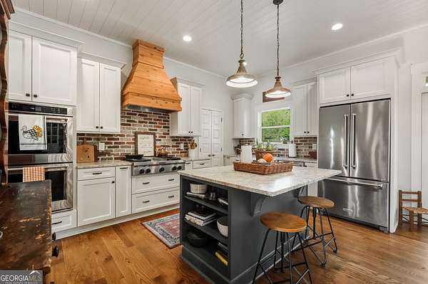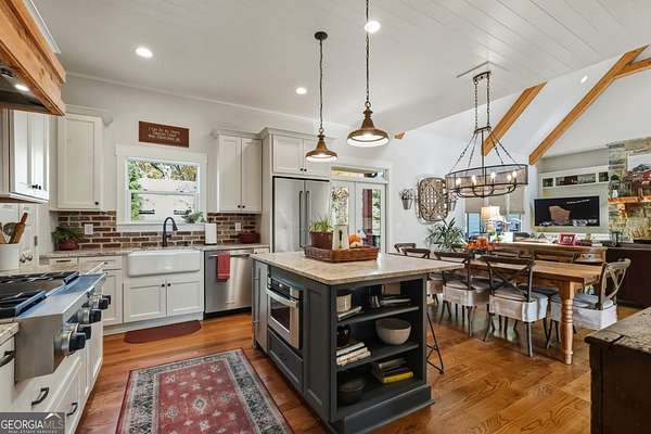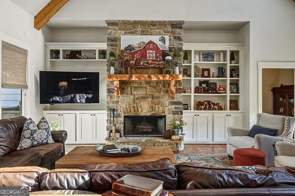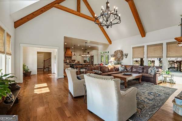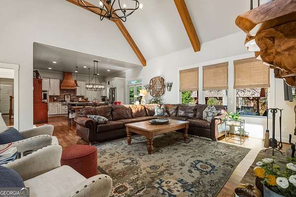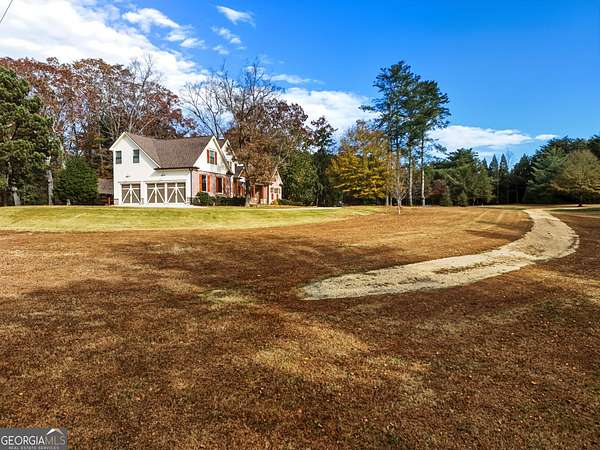 The sellers are truly sad to let this one go. Here's your opportunity to own a 2018-built home on 6 acres in a fabulous location - close to Marietta Square, Barrett Pkwy, and easy access to the Battery and highways. From the welcoming front entrance to the covered back porch, you will fall in love. Primary suite is on main with soaking tub, beautiful tiled shower, dual vanities and custom closet. The open concept kitchen features a farm sink, island with microwave and built-in ice maker, 4 burner gas stove with griddle and large walk-in pantry, all flowing seamlessly into the fireside family room highlighted by a stunning cathedral ceiling with wood beams. Main floor also features a dedicated office, mud room, laundry, powder room and exceptional storage, while the upper level provides 3 additional bedrooms and 1 bath. With hardwood floors throughout, a 3 car garage, and room to roam across the expansive acreage, this property offers modern conveniences and serene privacy. All this plus great schools!