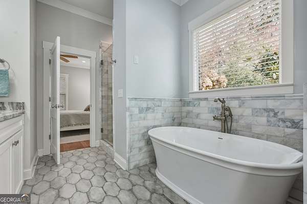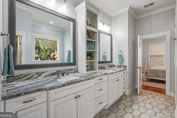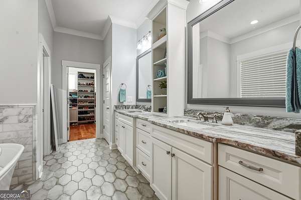 - Beamed Ceilings, Bookcases, Double Vanity, Master On Main Level, Walk-In Closet(s)
