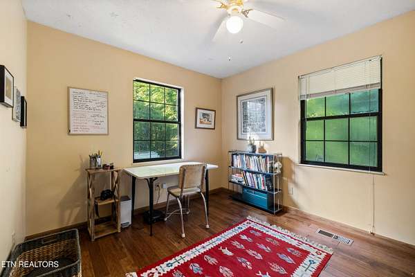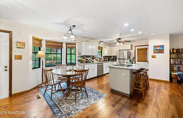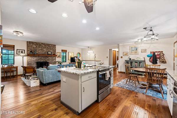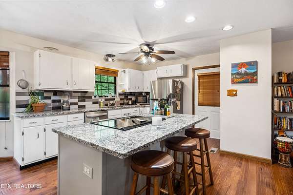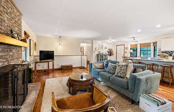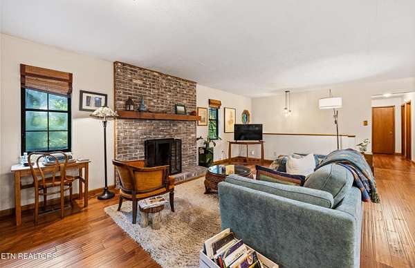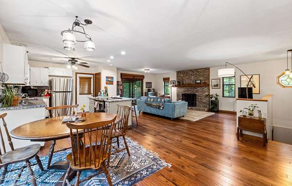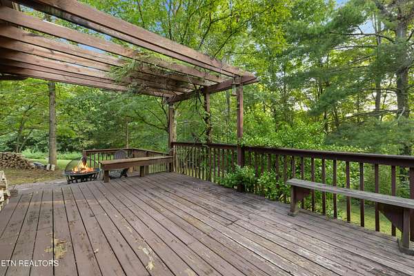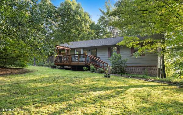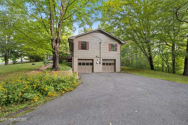 Home with acreage! Convenient to downtown Knoxville (ten miles) and all the excitement and amenities of nearby Pigeon Forge, Sevierville, Gatlinburg, and the Great Smoky Mountains National Park. Charming 3 bedroom 2 bath 2 car garage plus metal carport that can accomodate an RV. Private 1.92 acres with a creek at the back of the property at the end of the streert. Open floor plan on the main with hand scrapped hickory wood floors. Stainless steel kitchen appliances, granite counter tops, white cabinets, and island in kitchen. Floor to ceiling propane gas fireplace on main floor. Bay window overlooking the15 x 18 front deck with black iron posts. 10 x 20 screened porch with tiled floor in back with a bi-level 12 x 36 deck overlooking private wooded acreage. Lower level family room with pergo flooring and a additional wood burning fireplace that needs an insert. Archie's Stone and Fiireplace cleaned and inspected both fireplaces in 2024. The main level fireplace is a functioning wood burning fireplace.. A third bath is plumbed in the garage near the laundry. Whole house fan. Cooling insulation is R35. Nestled at the end of a private road with easy access to shopping and the interstate.