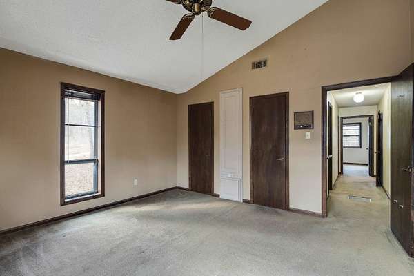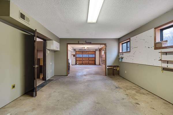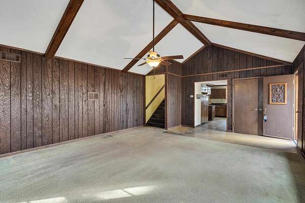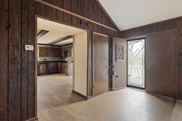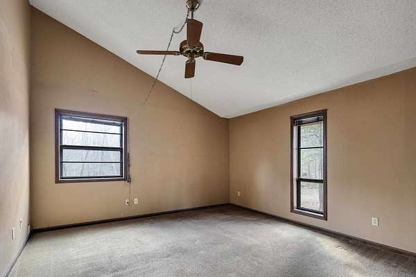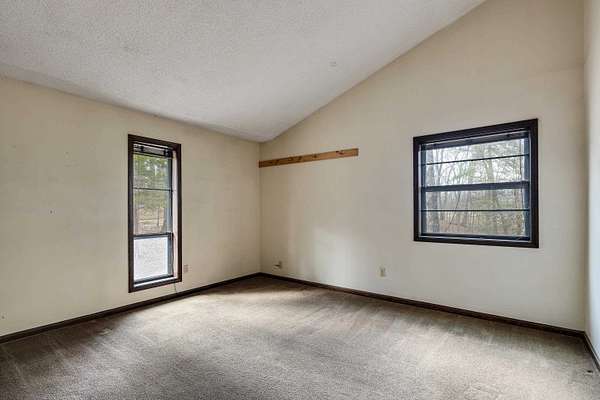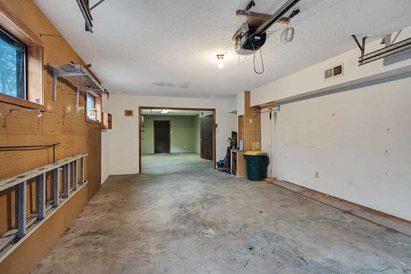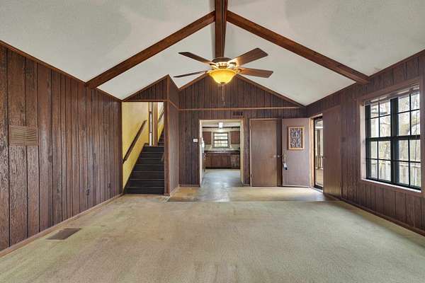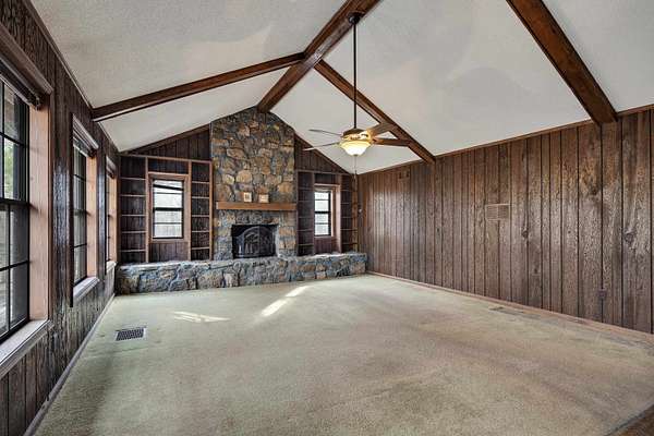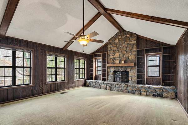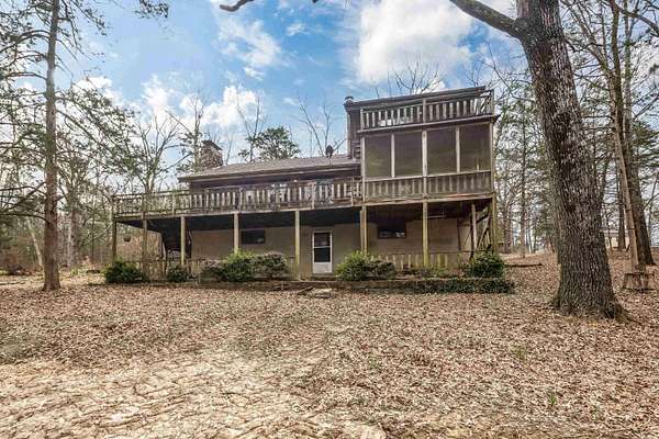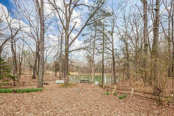 Tucked in the woods upon 2.3 acres with a private pond, gazebo w/fireplace, and water view of neighbors pond this Tri-Level home w/full walk-out basement offers over 2600 sq ft ~ 3200+ total sq ft ~ includes 15X45 heated & cooled 2 car garage and indoor workshop. Large vaulted great room w/wood beams, stone gas fireplace, built-in bookcases and cabinets then lead to the first tri-level staircase where you will find 2BR/1BA. Continue up to top level for the Primary bedroom w/walk-in closet, full bath, walk-out balcony overlooking pond. Head back down to enter into the Kitchen / Dining Combo with doors leading to the screened in balcony porch for backyard pond view. Area for washer/dryer. Head down to the walk-out basement w/additional 16X16 unfinished room. Head partially back up to the indoor workshop and 2-car garage. Property pending survey, being sold As-Is, Seller has never occupied property and has No knowledge of any home details, Recorded Driveway & Well Easement.