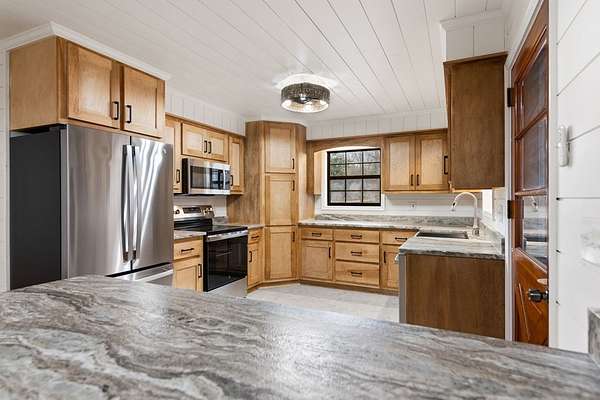 Welcome home to peaceful North Georgia living just minutes from Blue Ridge and McCaysville! This beautifully renovated 3 bedroom, 2 bathroom brick ranch sits on three private acres and offers the perfect blend of comfort, quality, and convenience. Designed for easy one-level living, this home features a low-maintenance exterior and thoughtful upgrades throughout. Brand new roof and HVAC system. New tile flooring in the kitchen and bathrooms. Gorgeous granite countertops. New cabinetry and stylish bathroom vanities. Updated lighting throughout. Brand new appliances. Electric fireplace and so much more! The full basement provides exceptional versatility with three garage doors, a dedicated storage room, and a cedar closet — ideal for hobbies, vehicles, or additional workspace. Outdoor living truly shines here. Enjoy extensive, low-maintenance landscaping complete with stone walkways and a beautiful stone fire pit — perfect for gathering under the stars. Relax on the spacious front and back porches and take in the peaceful setting, where deer and wild turkeys frequently roam. A large detached garage/workshop adds even more flexibility for projects, storage, or recreational equipment. Located on a quiet street just a short drive to shopping, dining, and entertainment, this move-in ready property offers privacy, modern upgrades, and the charm of mountain-area living — all in one exceptional package. New survey to be completed soon.