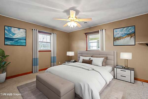 Charming Two-Bedroom Dollhouse with Mountain Views on 1.74 Acres Absolutely adorable two-bedroom, one-bath home situated on a total of 1.74 acres, including an adjoining fenced lot-perfect for animals, gardening, or simply enjoying the open space and breathtaking mountain views. This move-in ready home features some of the prettiest hardwood floors you'll find, adding warmth and character throughout the living room and primary bedroom. Entry from the carport leads into a convenient mudroom/laundry area complete with a stacked washer and dryer that convey. The kitchen is nicely sized and functional, offering easy access to the main living areas. The bathroom is centrally located between both bedrooms. The second bedroom is currently carpeted, with the owner believing hardwood flooring lies beneath. Outside, the property truly shines. The adjoining fenced lot offers endless possibilities for livestock, gardening, or outdoor enjoyment. A massive 24x84 equipment shed and stable provide exceptional storage or workspace. Additional features include a storage building behind the home, another shed at the rear of the property, and RV parking conveniently located under the carport. To top it all off, enjoy truly stunning mountain views that make this property feel like a peaceful retreat while still being practical and functional. All information taken from a third-party source (courthouse/tax records) and to be verified by the buyer/buyer's agent. Drawn in lines are approximate. Some elements (fires in fireplaces, twilight shading, lighting, etc.) have been added/modified digitally. Rooms noted have been virtually staged for decorating ideas only, not to scale or representative of any product.