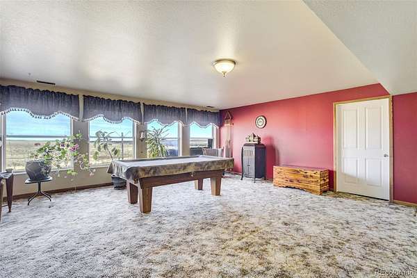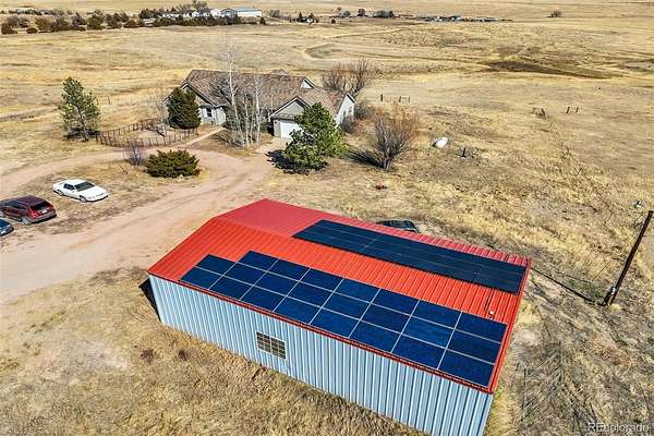 Escape to the peace and privacy of country living! Rare 93 ACRE GEM offering serenity and space. Fenced for all your animals. Seasonal spring fed ponds. 40 minutes to Peterson AFB. Custom stucco ranch style home with a newer concrete tile roof, new deck railing with lighting for your evening enjoyment, 2 car attached garage, 1500 square foot pole barn, with 110 and 220 electrical power. Store your RV, boat, ATVs and additional cars, or use as a large workshop. The pole barn has a newer metal roof with solar panels that feed into the electricity to reduce the overall electric bill. Electric bill during the summer averages $49 per month. Enjoy the outdoors on two decks or a covered patio overlooking the meadows, ponds, and trees in the distance. Complete main level living. Enjoy cooking in the country kitchen with beautiful granite countertops and stainless steel appliances. The kitchen opens to a very spacious dining area large enough for your bakers rack or hutch. Newer evaporative cooler to keep it nice and cool during the summer. Newer main level windows. Large living room opens to a formal dining room with a walk out slider to the deck. Beautiful newer steel front door. Nice size primary bedroom and bath with a walk in closet and a slider to a private deck. Newer main level furnace and there is another furnace in the basement that is zoned separately. Main level battery back up pellet stove that keeps the living room nice and warm. The main level office can be used as the fourth bedroom. Great walkout basement with hookups to add a wet bar. (Pool table is included) Basement comes with a large bedroom and full bath. Spacious storage room to store all your extras. This truly an incredible property.
