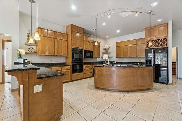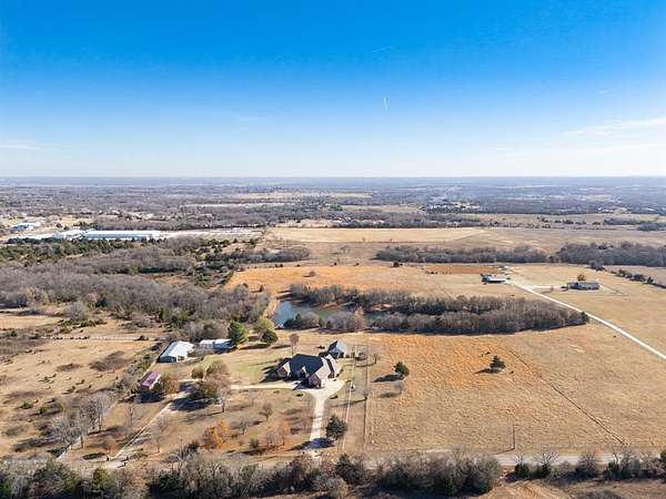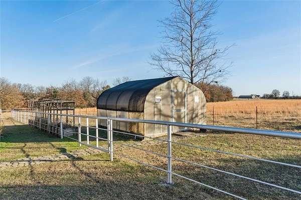 Escape to your own private retreat on 20 beautiful acres with a custom brick home, 2 stunning stocked ponds, multiple outbuildings, greenhouse, and a 30' x 40' outdoor pavilion perfect for gatherings. Pole lighting illuminates the entire backyard, creating an incredible evening setting for entertaining or relaxing. Inside, you'll find approximately 4,685+ sq ft plus an added upstairs bonus suite, giving you 4 bedrooms, 3 full baths, and 2 half baths. Built with 6" studs and quality construction throughout, this home offers three spacious living areas, including a family room with a vaulted ceiling and an impressive studio with two walls of cabinetry and countertops-ideal for hobbies, home business, or a creative workspace. Kitchen is designed for serious cooking and easy hosting, featuring granite countertops, double ovens, a 2024 propane cooktop with ceiling venting, breakfast bar, and two dining areas. Custom cabinetry with adjustable and pull-out shelving runs throughout the home, plantation shutters, hand-etched windows, and heated toilet seats in four bathrooms for extra comfort. The cozy electric fireplace and custom cedar staircase leading to the large upstairs bonus room, full bath, and huge storage areas add warmth and character. The luxury primary bath features solid glass block windows for natural light and privacy, while the coated garage floor and insulated garage walls keep the utility spaces clean and efficient. Electric HVAC with 3 new units and a Cullison central water softener. Outside is where this property truly shines, 2 50-foot-deep, stocked ponds, Two electric gates with remotes and keypads, Concrete circle drive. For those needing shop or barn space, this property delivers with multiple outbuildings, two with 220 electric. Whether you're looking for a hobby farm, workshop space, or a serene countryside homestead, this property offers an exceptional blend of comfort, function, and privacy-ready for its next owner to enjoy.