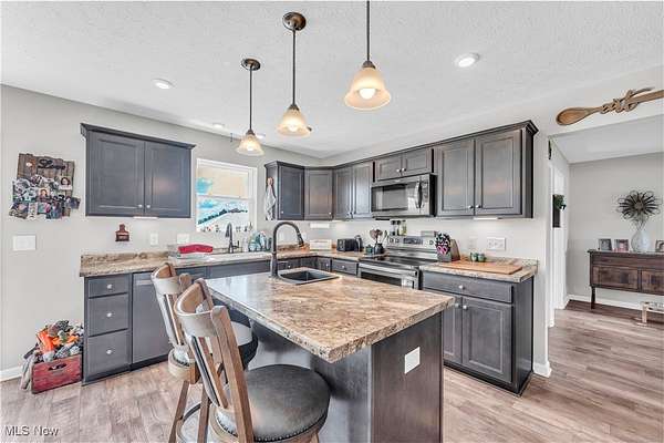 Welcome to 18315 Gifford Rd in Wellington! A recently built, thoughtfully upgraded home offering over 2,200 sq ft of living space on nearly 3.5 acres! This 3-bedroom, 2.5-bath beauty is built to last with 2x6 studs and full insulation throughout, including the garage and garage door. The oversized garage is a dream, featuring hot/cold water supply and a dedicated welding receptacle. Inside, the upgraded kitchen boasts a prep sink in the island, under-cabinet accent lighting, and plenty of space for cooking and entertaining. The living room is designed with convenience in mind, offering outlets every 6 feet and even one above the custom fireplace mantle. Upstairs, you?ll find all three bedrooms along with a 15x9 loft, perfect for an office or play area. The luxurious owner?s suite includes a custom walk-in tile shower and quartz counters. The basement is just as impressive with 9-ft ceilings, two sump pumps, two water heaters, an oversized 5-ton geothermal furnace, and a Leviton breaker panel with surge-protected breakers. Outdoors, enjoy a massive custom concrete patio with a built-in fire pit, plus a swing set for endless fun. Every detail in this home was planned with comfort, durability, and style in mind! You don't want to miss out on this one....schedule your private showing today!!