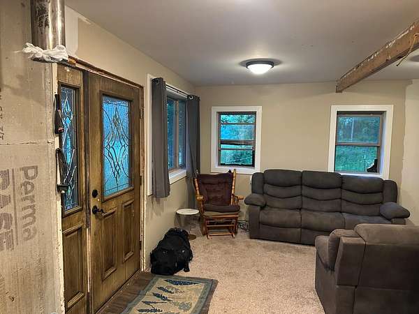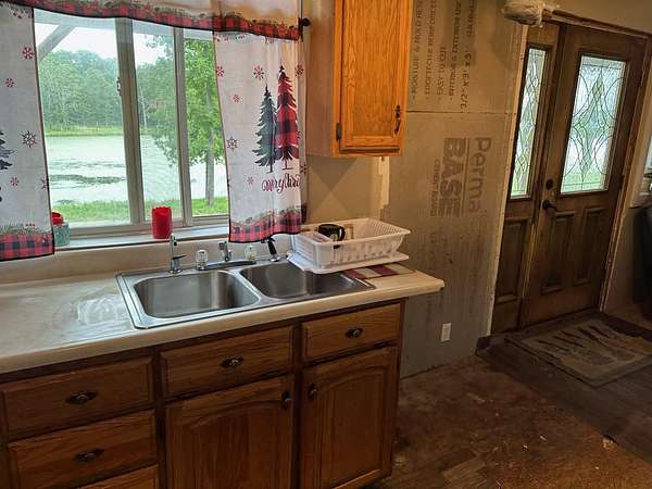 Est $555/moLocated in Mtn. View, MO- 4.8 acres m/l on a large 8 acre shared lake with neighbors. Unfinished off grid cabin 16x24 1.5 story, , hand dug well, and some beautiful views. Cabin has a loft upstairs, full bathroom, kitchen bedroom (no closet) living room on the main floor. NO RESTRICTIONS and sits at the end of a dead end road. Needs some finish work, but you can live in it, and finish the way you want it. Electric available by having electric company adding two poles (per Seller)