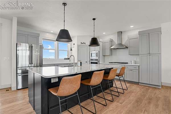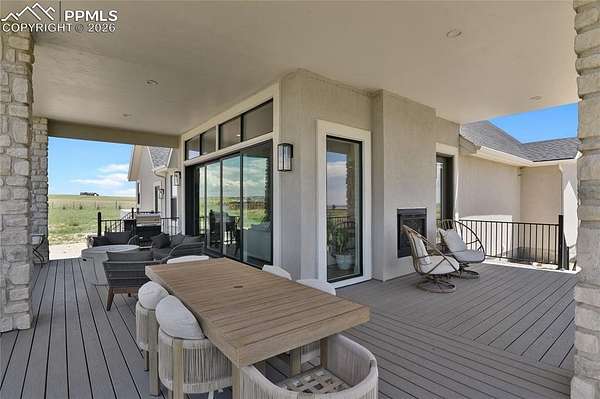 Stream front paradise! Welcome to your dream property on 43 acres of Colorado beauty. Built in 2022 with both luxury and functionality in mind, this custom ranch-style home offers expansive Pikes Peak views, open-concept living, and a turnkey homestead-all just minutes from local amenities. Inside, you'll find five spacious bedrooms including two primary suites, four full bathrooms, and soaring 12-foot ceilings. The gourmet kitchen features a 9x5 granite island, gas cooktop with hood, walk-in pantry, and unobstructed mountain views through a 12-foot sliding Carolina door. A double-sided passthrough fireplace adds warmth and charm in the living room and deck. There is a bonus shower area leads outside for easy wash of animals or selves after exploring your property, And a versatile bonus room/office offers space for remote work or creative use. Plus 2 additional storage areas! Have some peace of mind and stay powered with a whole house generator! Step outside to a covered front porch for sunrise and an expansive back deck with built-in speakers for sunset entertaining. The property has been thoughtfully enhanced with 40 Thuja Giant trees forming a windbreak, professionally installed on drip irrigation. Just under 1.5 acres surrounding the home and garden have been securely fenced-perfect for pets, livestock, or peace of mind. The turnkey homestead includes two large enclosed chicken runs, a 40x20 garden with raised beds, and an oversized greenhouse for year-round growing. A spring-fed creek, two seasonal ponds, and regular wildlife visits complete this stunning rural setting. With a luxury home, established homestead, and acres of open space, this property offers the best of Colorado living-comfort, self-sufficiency, and breathtaking scenery in one extraordinary package. Plus you can add another dwelling onto the property. Bring your horses and other animals or just watch the wildlife share your piece of heaven!