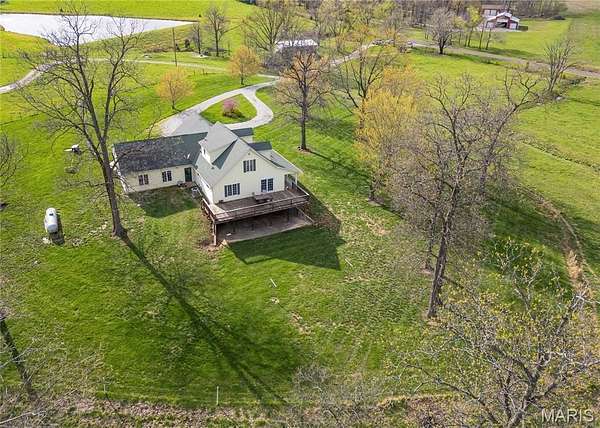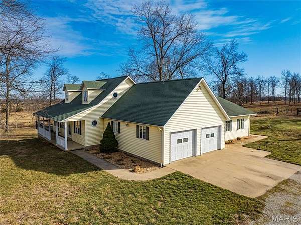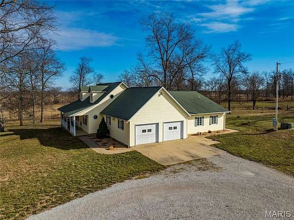 Stunnning 4-bedroom, 3-bath residential home located on 70 spanning pristine acres! The beautifully designed home offers newly installed luxury vinyl plank flooring, plush new carpet on the stairs, two living areas, one which is anchored by a floor to ceiling stone gas fireplace and expansive windows that capture spectacular views. You will also find a large kitchen with a new backsplash, separate dining space, master bedroom on main level, another bedroom currently being used as an office, and two spacious bedrooms & bathroom on the upper level. The grounds are equally impressive, offering a seamless blend of luxury designed for both entertaining and quiet relaxation. The estate features a 60' x 61' barn with a 6-inch concrete floor, a private, professionally stocked lake with largemouth bass and green sun perch, and three and a half frost-free water feeders to support refined agricultural or equestrian pursuits. The property also includes a large shop, ideal for storing your mower, tractor, tools, and outdoor equipment. Whether envisioned as a private retreat, legacy property, or luxury farmstead, this extraordinary offering delivers privacy, beauty, and elevated rural living at its finest. Make an appointment today to see this gorgeous home and property!