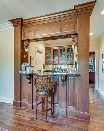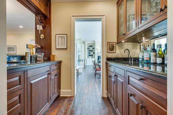 - 2+ Person Tub, Bar, Built-In Features, Central Vacuum, Eat-In Kitchen, Entrance Foyer, Granite Counters, Kitchen Island, Pantry, Primary Downstairs, Utility Sink, Walk-In Closet(s), Wet Bar, Whirlpool