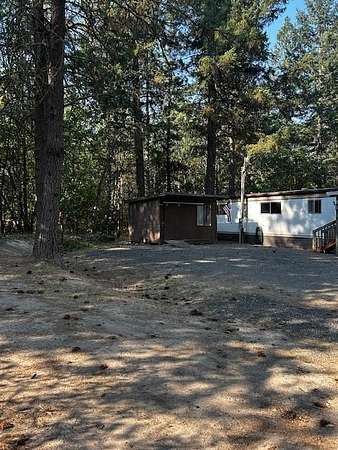 This sweet 4.67 acre property has such potential - nice flat lot is buildable yet the older mobile home is quite livable while you wait to build. On one of the larger lots in area, you can enjoy your own hiking paths along the meandering seasonnal creek. Nice kitchen and lovely laminate floors. Fenced garden with lots of fruit trees and raised beds for veggies. Three sheds, 2 with electricity, one with carport for equipment. Perfect for gardeners, horse lovers or someone wanting to build in the future. Older mobile home is not de-titled, in good shape to live in while waiting to build. Newer appliances including a top line Speed Queen washer, dryer set.