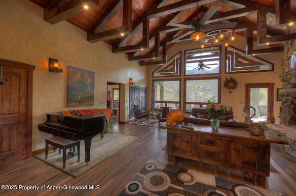 Autumn Rock is a one-of-a-kind mountain retreat where craftsmanship, history, and soul meet in perfect harmony. Named for a cherished quilt sold to help fund the purchase of the land, the home occupies a sacred space at the spiritual center of three Native American landmarks: East Peak, Blanca, and Greenhorn. This stunning home is situated on 40 acres, which also abuts 4,000 acres of BLM that are teeming with wildlife. The local elk herd, boasting a few hundred head, thrives in Yellowstone Ranch. The 4-bed, 3-bath homes cover 3,857 sf. Its interiors reflect this reverence-walls are hand-troweled and glazed in a Tuscan antique finish, art niches are subtly lit, and massive Douglas fir hammer-beam trusses frame the family room, the centerpiece of the room is a rustic stone wood burning fireplace accompanied by a custom chandelier crafted from an antique pulley that hangs proudly. The home is rich in character: floors are durable vinyl, ideal for the in-floor heat system. Exquisite Alderwood doors, exposed rebar accents, and a powder room with reclaimed wood and stone basin show thoughtful attention to detail. The primary suite offers sweeping views, a gas fireplace, live-edge features, and a spa-like bath. History echoes in every room from embedded Civil War-era bullets in extinct American chestnut doors to wainscoting reclaimed from old La Veta dance hall wood. A walkable crawlspace houses the mechanicals, including a propane boiler and whole-house filter system. Autumn Rock is more than a home; it's a legacy. The home is filled with rich character: floors are durable vinyl, ideal for the in-floor heat system. Exquisite Alderwood doors, exposed rebar accents, and a powder room featuring a reclaimed wood and stone basin demonstrate thoughtful attention to detail. The primary suite offers sweeping views, a gas fireplace, live-edge features, and a spa-like bath beneath a beam reclaimed from local oaks. History echoes in every room-from embedded Civil War-era bullets in extinct American chestnut doors to wainscoting made of oak from the property and old La Veta dance hall wood. A walkable crawlspace houses the mechanicals, including a propane boiler and whole-house filter system. Autumn Rock is more than a home-it's a legacy.