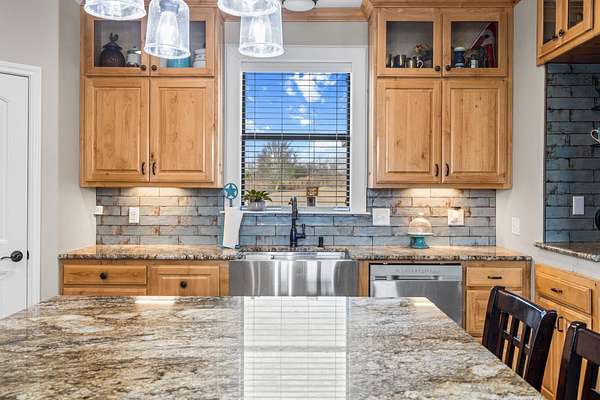 This beautiful 3/2/2 home has 1720 sf and sits on 19.56 acres. The home features an open concept floorplan, huge kitchen, spacious primary bedroom and large living room. In the kitchen, you will find granite counter-tops, stainless steel appliances, a pantry and a coffee bar. The living room features large windows that provide tons of natural light, a wood burning stove and all the space for entertaining you'll need. The primary bedroom features a large en suite with a tiled walk-in shower, double lavatory, a walk-in closet and a soaker tub. Step outside to the beautiful views! Relax on the covered porch or entertain friends/family. There is a conex box on the property that doubles as a storage building. The buyer has the opportunity to purchase the storage unit business at an additional cost.