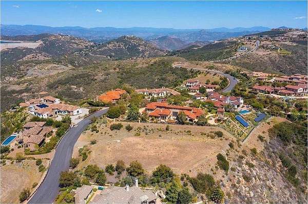 Over one acre of flat buildable pad, Lot 29, located in the prestigious 24/7 guard-gated master planned community of Cielo, Rancho Santa Fe, CA. Cielo is inspired by the coastal villages of northern Mediterranean and offers a blend of natural beauty and elegant architectural design. One of the best remaining lots available in Rancho Santa Fe. Fabulous panoramic ocean views stretching from coastline Del Mar all the way to Point Loma and further to Mexico. Located high in the hills at 1155' elevation. This lot offers breathtaking ocean and canyon views to the south and west. To the north the snow-covered peaks appear in the winter. This site will take your breath away. Plans for a 7,000 SF home are within 30 days of HOA approval. Merely finalize construction drawings to your interior desires and submit for building permits. Unlike other Cielo Lots where the Owner's building process starts from scratch, you can begin construction immediately upon approval, saving years of design and approval stages. Build your dream estate atop this elevated lot, perfectly positioned to capture breath-taking sunsets and the serenity of the 180-degree views. Enjoy the privacy in this sought after Cielo community with access to world class amenities, including tennis courts, pickle ball courts, parks and clubhouse with state of the art work out facility and Olympic sized pool.