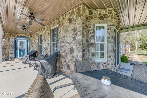 Tucked away on 1.9 acres in the county--yet just minutes from everything Bristol has to offer--this exceptional, fully updated home delivers the perfect blend of privacy, comfort, and true self-sufficiency with a million-dollar view! If you've been searching for a property that's not only beautiful but also built to perform no matter what life brings, this one stands in a class of its own. From the moment you arrive, you'll notice the peaceful setting and breathtaking mountain views that frame the home, best enjoyed from the expansive wraparound covered front porch--complete with aluminum ceilings and dual fans for year-round comfort. Inside, the home offers effortless one-level living with 3 spacious bedrooms, 2 full bathrooms, and a versatile upper-level bonus room ideal for a home office, guest space, or flex area to fit your lifestyle. Step into the heart of the home and you'll find a thoughtfully upgraded kitchen designed to impress. Custom cherry cabinetry, new granite countertops, a beautifully coordinated backsplash, and brand-new appliances--including a convection/air fry oven--create a space that's both functional and stunning. A custom-built pantry door adds a unique touch, while the new farmhouse sink and faucet complete the elevated design. The open flow continues with hardwood and stone tile flooring, crown molding throughout, recessed lighting, and brand-new luxury carpet that adds warmth and comfort in all the right places. The primary suite, conveniently located on the main level, offers a private retreat with a spacious layout, walk-in closet, and a spa-like bathroom featuring a jetted tub and tiled walk-in shower. Every bedroom includes its own walk-in closet, providing abundant storage throughout. Additional highlights include main-level laundry, washer and dryer conveying, and even two refrigerators included--making this home truly move-in ready. What truly sets this property apart is its forward-thinking efficiency and preparedness. This home is equipped with a fully owned whole-house solar system paired with two backup batteries, giving you peace of mind and energy independence. A hybrid HVAC system and solar-compatible hybrid water heater enhance efficiency even further. The crawl space has been fully encapsulated and includes a dehumidifier and sump pump system, adding another layer of care and protection. Outside, the property continues to impress with a brand-new greenhouse, a never-used chicken coop, and a raised garden bed with protective screening--perfect for those looking to embrace a more sustainable lifestyle. Gutter guards, new gutters and downspouts, steel garage doors, and new storm doors on both the front and back entrances ensure durability and low maintenance for years to come. Security and convenience are also top of mind, with seven outdoor color security cameras featuring lighting, all accessible via phone app, plus an indoor TV monitoring system. Built-in blinds, brand-new fans, fresh paint from top to bottom, new toilets, and countless additional upgrades make this home feel like new construction--without the wait. To top it all off, you'll find two finished attic spaces ideal for storage or future expansion, offering flexibility as your needs grow. This is more than just a home--it's a lifestyle. Private, prepared, beautifully upgraded, and completely turn-key. Opportunities like this don't come along often. BUYER/BUYER AGENT TO VERIFY ALL INFORMATION.
