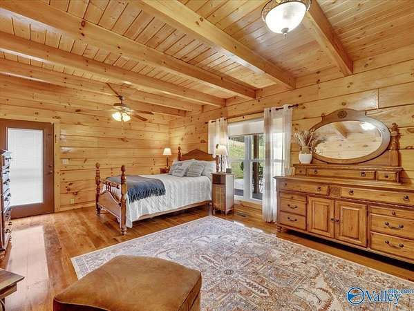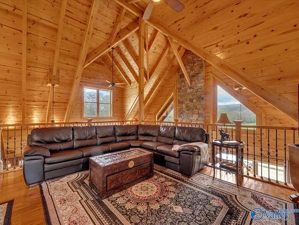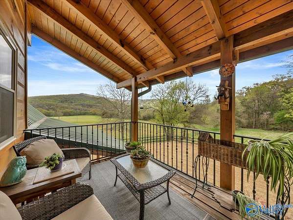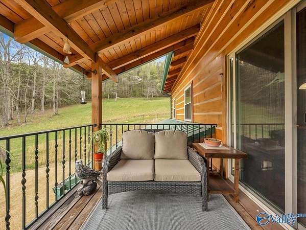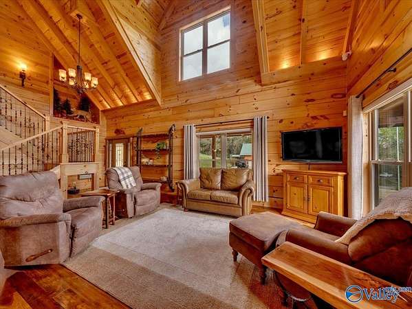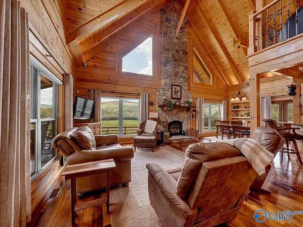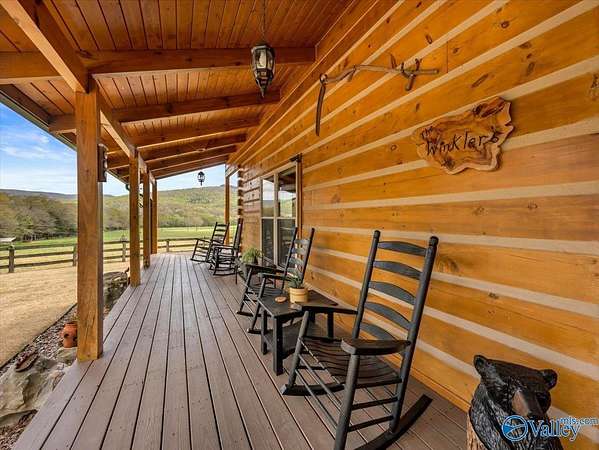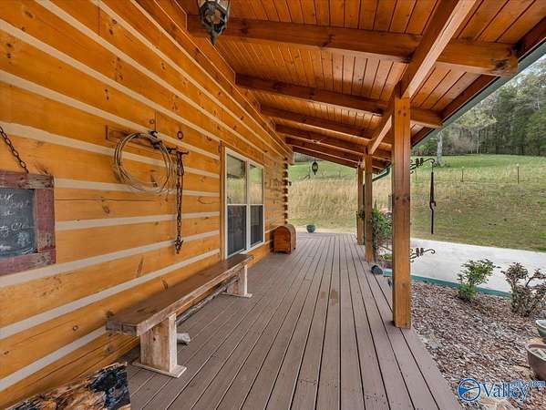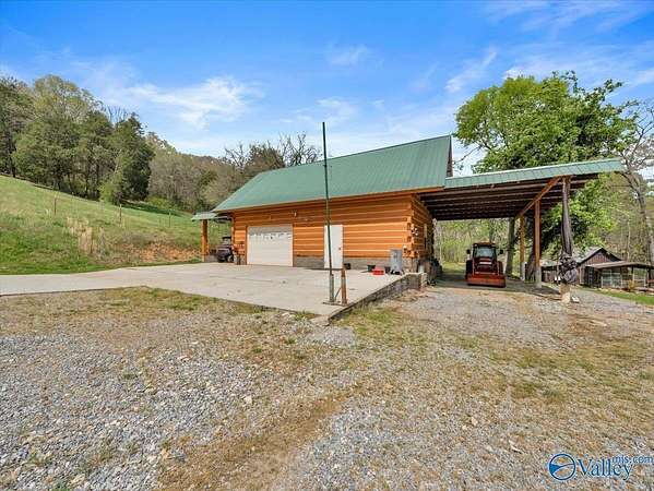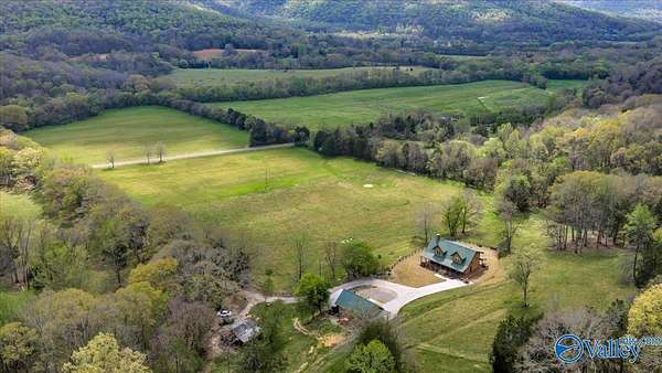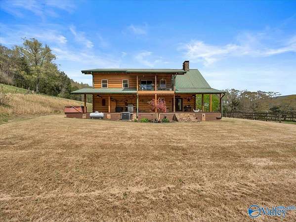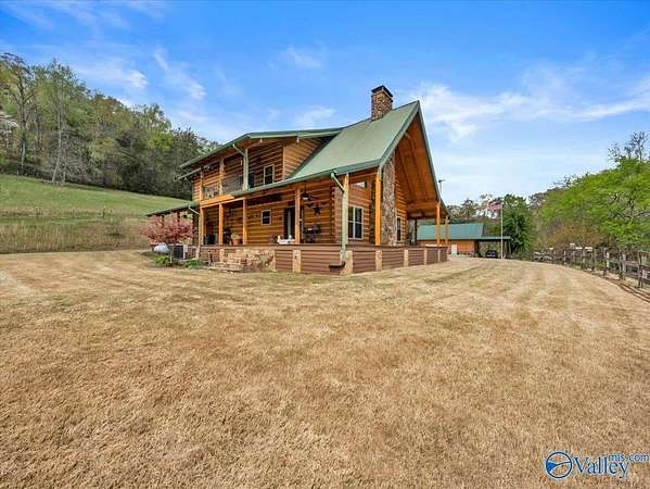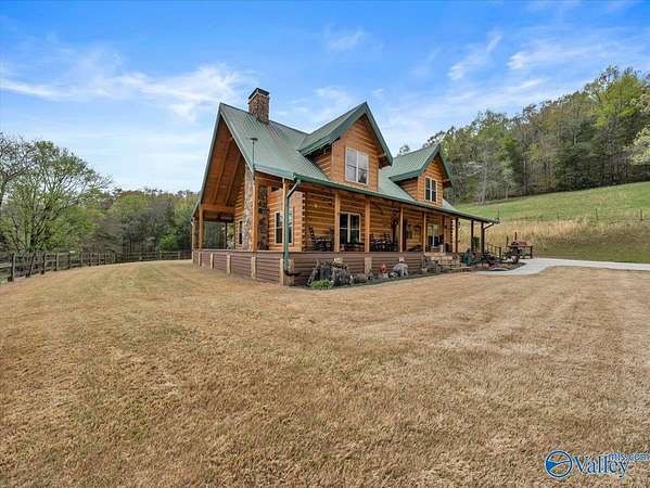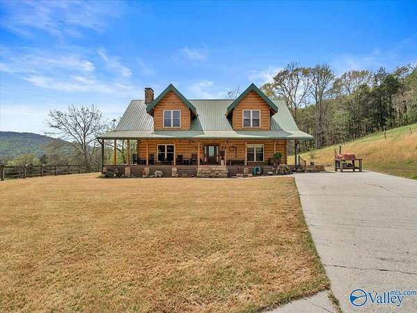 Tucked away in scenic Estill Fork, Alabama, this meticulously maintained custom log cabin offers the perfect blend of craftsmanship and outdoor living. Built from kiln-dried white pine logs from North Carolina, the home features hardwood floors throughout, custom granite countertops, beautiful bay windows, a wraparound porch, and a hot tub with sweeping views. The land offers sloped mountain terrain, flat pasture, abundant deer and turkey hunting, and Paint Rock River frontage for excellent fishing and swimming. Detached garage/workshop, wood-burning furnace, and heat pump complete this rare retreat. Enjoy the beautiful scenic commute to Huntsville, Scottsboro or Guntersville!