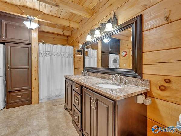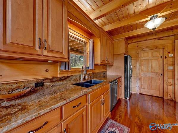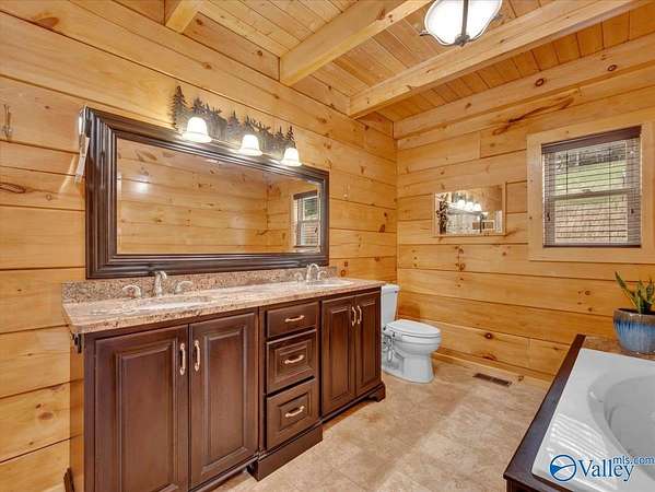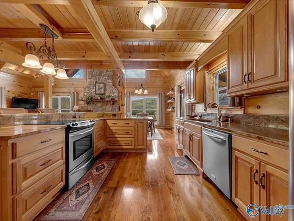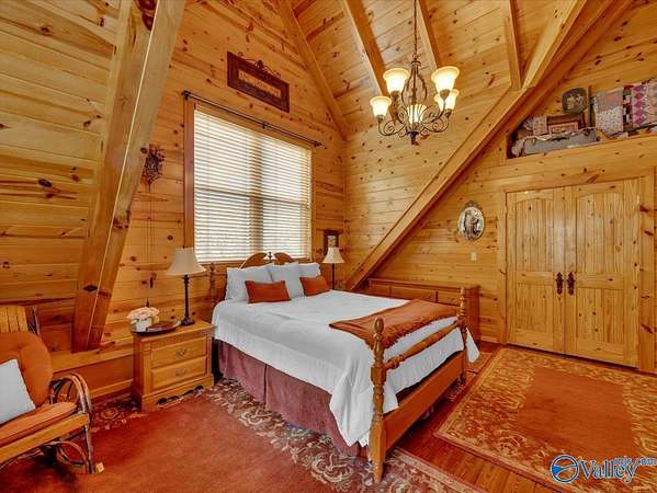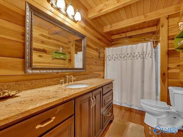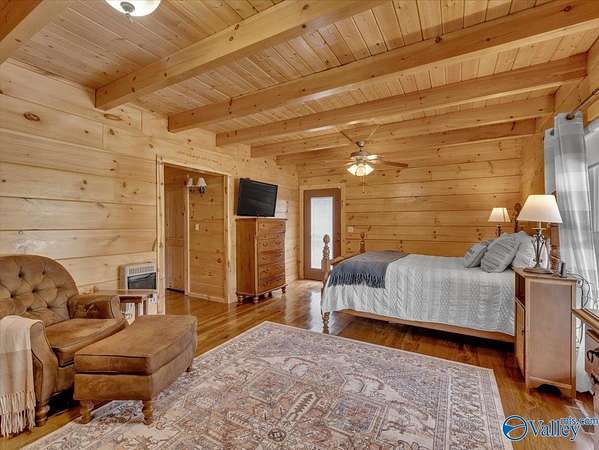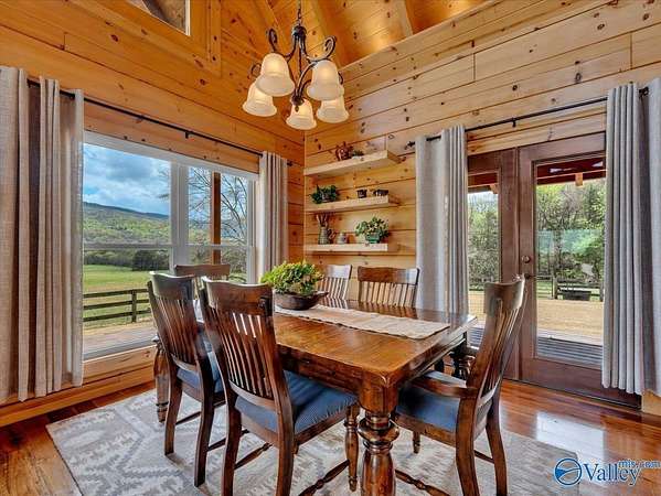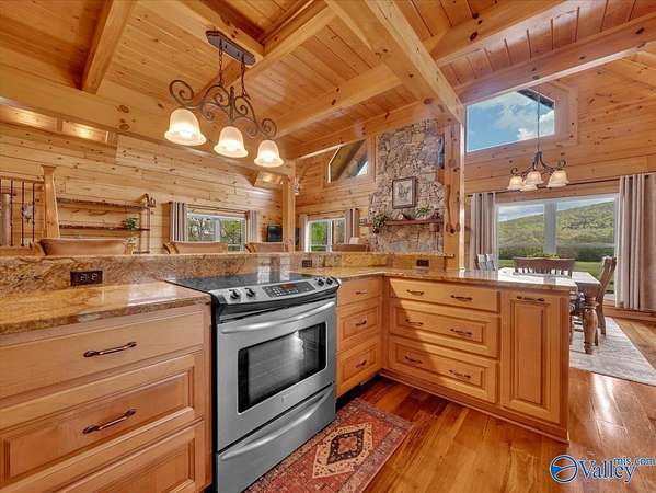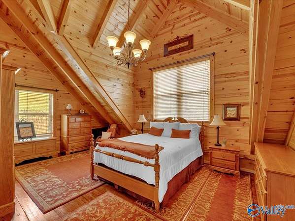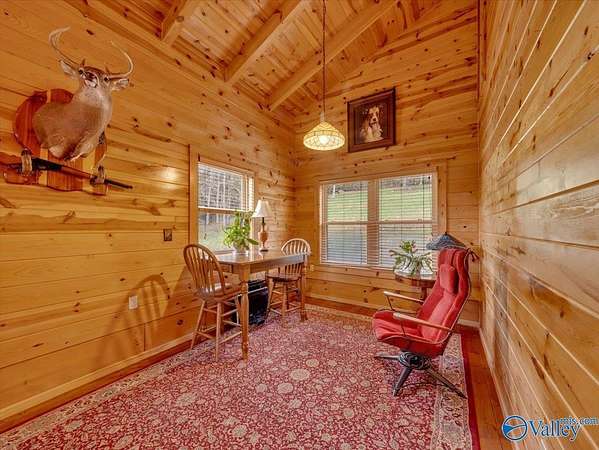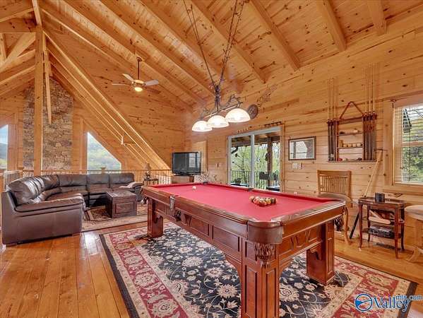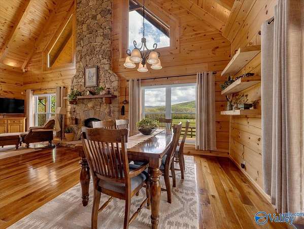 Tucked away in scenic Estill Fork, Alabama, this meticulously maintained custom log cabin offers the perfect blend of craftsmanship and outdoor living. Built from kiln-dried white pine logs from North Carolina, the home features hardwood floors throughout, custom granite countertops, beautiful bay windows, a wraparound porch, and a hot tub with sweeping views. The land offers sloped mountain terrain, flat pasture, abundant deer and turkey hunting, and Paint Rock River frontage for excellent fishing and swimming. Detached garage/workshop, wood-burning furnace, and heat pump complete this rare retreat. Enjoy the beautiful scenic commute to Huntsville, Scottsboro or Guntersville!