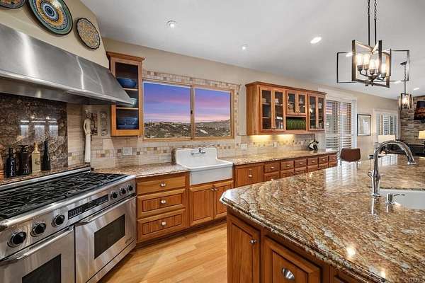 The seller will entertain offers between $1,699,000 and $1,949,000. Discover unparalleled serenity and stunning views on this nearly 9-acre equestrian estate, perfectly situated adjacent to county land and the sprawling 650-acre Simon County Preserve. This estate is enhanced by a fully owned 45-panel solar system, producing vineyards with Merlot, Zinfandel, Sangiovese, Cabernet Sauvignon, and Cabernet Franc grapes, along with 20 olive trees and a variety of fruit trees including peach, apricot, apple, and lemon.With direct access to miles of scenic trails for horseback riding and hiking, this property offers a unique lifestyle that seamlessly blends outdoor adventure with refined living. This custom-designed home is a true entertainer's dream. It boasts a gourmet kitchen with an expansive granite island, a professional-grade 6-burner Dacor range, a warming drawer, and a double-drawer dishwasher--all complemented by breathtaking views. The home's sweeping patios, indoor/outdoor bar, and multiple entertaining spaces create the ideal setting for gatherings or peaceful relaxation. While offering the tranquility of rural living, this property is conveniently located just five minutes from downtown Ramona, 25 minutes from Poway, and approximately 45 minutes from San Diego's world-class beaches. Surround yourself with the charm of a vibrant community known for boutique wineries, local restaurants, unique shops, vineyards, and orchards. A short drive away, you'll find Julian, famed for its delightful apple pies. Embrace a lifestyle of luxury, sustainability, and natural beauty. Your personal paradise awaits!