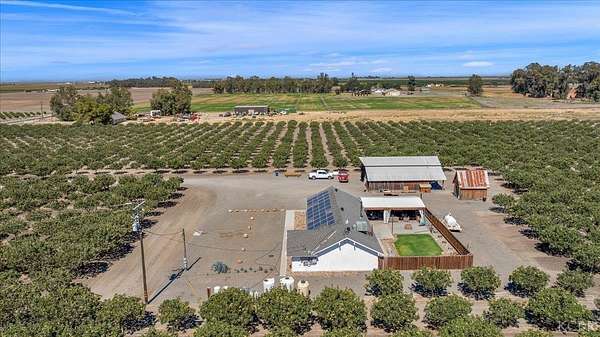 Discover Country Living with Income Potential Escape the hustle without sacrificing convenience! Just 30 minutes from major services, this 27-acre property offers the perfect balance of comfort, space, and opportunity. The thoughtfully updated, like new, 3-bedroom, 2-bath home features granite countertops, energy-efficient LED lighting, and a cozy wood-burning stove. Enjoy the comfort of modern living with an attached 2-car garage, outdoor kitchen, fenced yard, and owned solar panels to keep costs low. The property's true appeal lies in its productive 24-acre *Golden Hills pistachio orchard* on UCB-1 rootstock, producing approximately 2,850 lbs per acre this year. Designed for efficiency, the orchard boasts a dual drip irrigation system, a 600' deep ag well with a 30Hp pump, fertilizer and acid injection systems, and 27 shares of Jacob Rancho Irrigation District water. Additional water sources include two ag wells and a solar-powered domestic well with a new pump and bladder tank. A spacious 1,600 sq ft barn with BendPak lift offers flexible use for hobbies, storage, or equipment maintenance. Whether you're dreaming of hobby farming, investment farming, or simply more elbow room, this property delivers. Don't delayCall today!