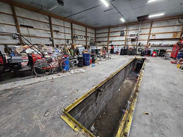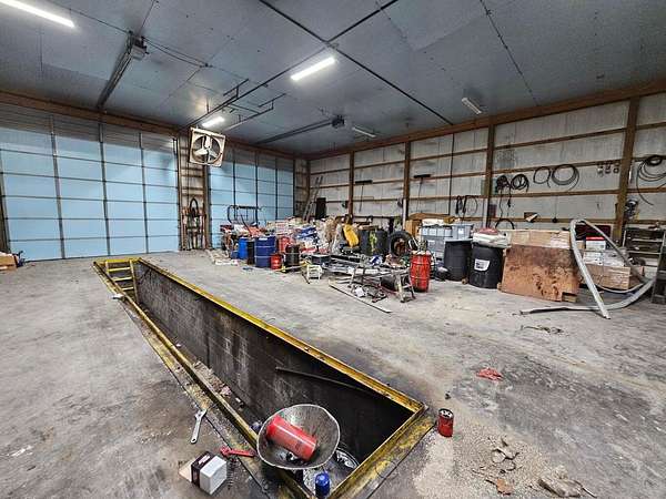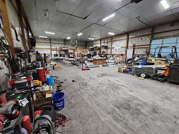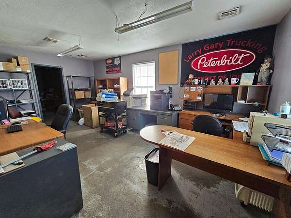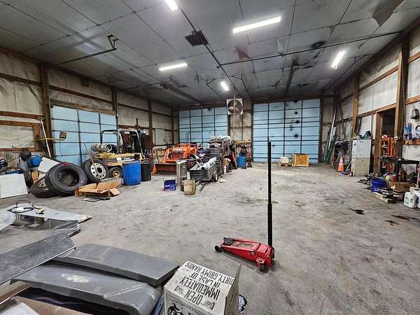 Land located in a great location near major highway for easy commuting. Property includes over 3 acres with 2 large connected commercial shop buildings. Property was used as a successful trucking company for many years. Building has an office space including bath and kitchenette area is approx. 35 x 30. First garage area includes 3 commercial size doors and an additional office space. It measures approx. 40 x 80. Second garage measures approx. 40 x 50 that includes an oil change pit. Both are connected by a closed in hallway. Both sides include large fans for ventilation and oil heater units. There is a covered porch that enters into the office area. The drive has lots of room for large vehicle parking.. Land is approx. 3.29 acres.