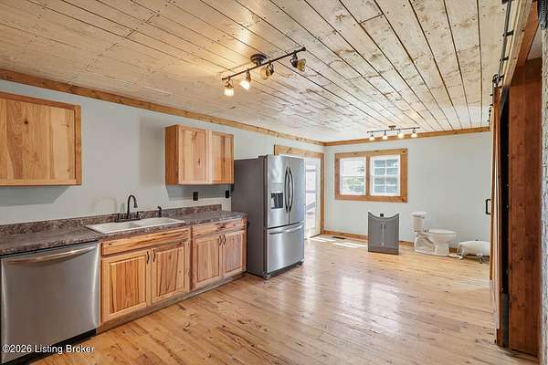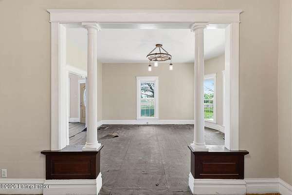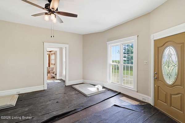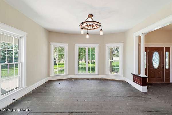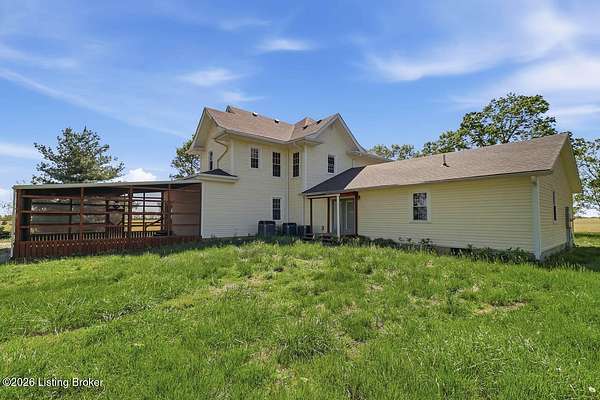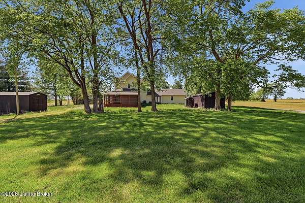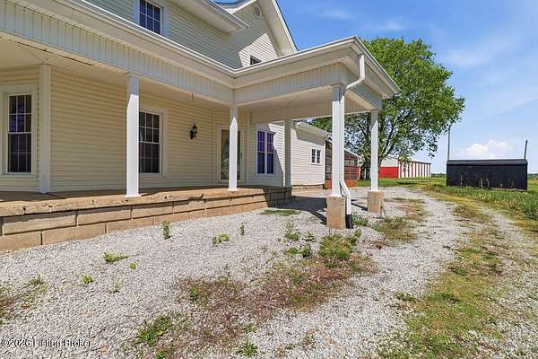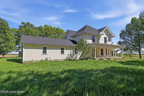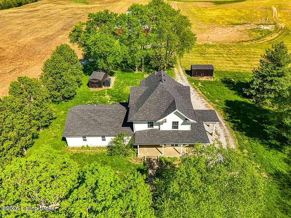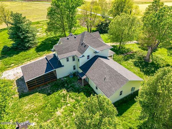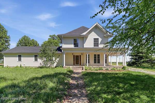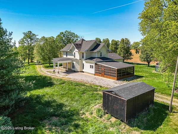 Priced to reflect renovation work needed. Something old has soul. Something with 4,100 sqft and 2.36 acres has potential. This wraparound-porch farmhouse is the kind of place you slow down for. Fields out every window, quiet that actually sticks, and room to breathe in every direction. It's not perfect. It needs your vision. Picture mornings on the wraparound porch with countryside views, evenings unwinding in the 24x30 screened patio, and winters kept warm by a wood-burning HeatMaster system that slashes utility bills. Five bedrooms, 10-ft ceilings, ornate wood trim, pocket doors, two laundry rooms, a main-floor primary suite with double closets, and a kitchen built for real cooking and entertaining with tons of space. Multiple HVAC systems. Two outbuildings. Buried water access with a separate septic ready for a future garage or build.All on 2.36 private acres in Shelby County, minutes from Shelbyville and Eminence. This one rewards the buyer who sees what it can become. Schedule your private showing today.